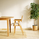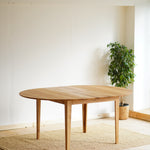 Graceful, elegant and surprising. This strong but light oak table with a sophisticated folding mechanism does not take up much space, but it can seat even a larger visitor when you need it. The solid oak wood stands out beautifully in its design and you won't want to get away from it.