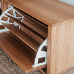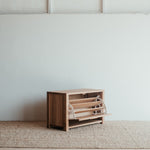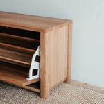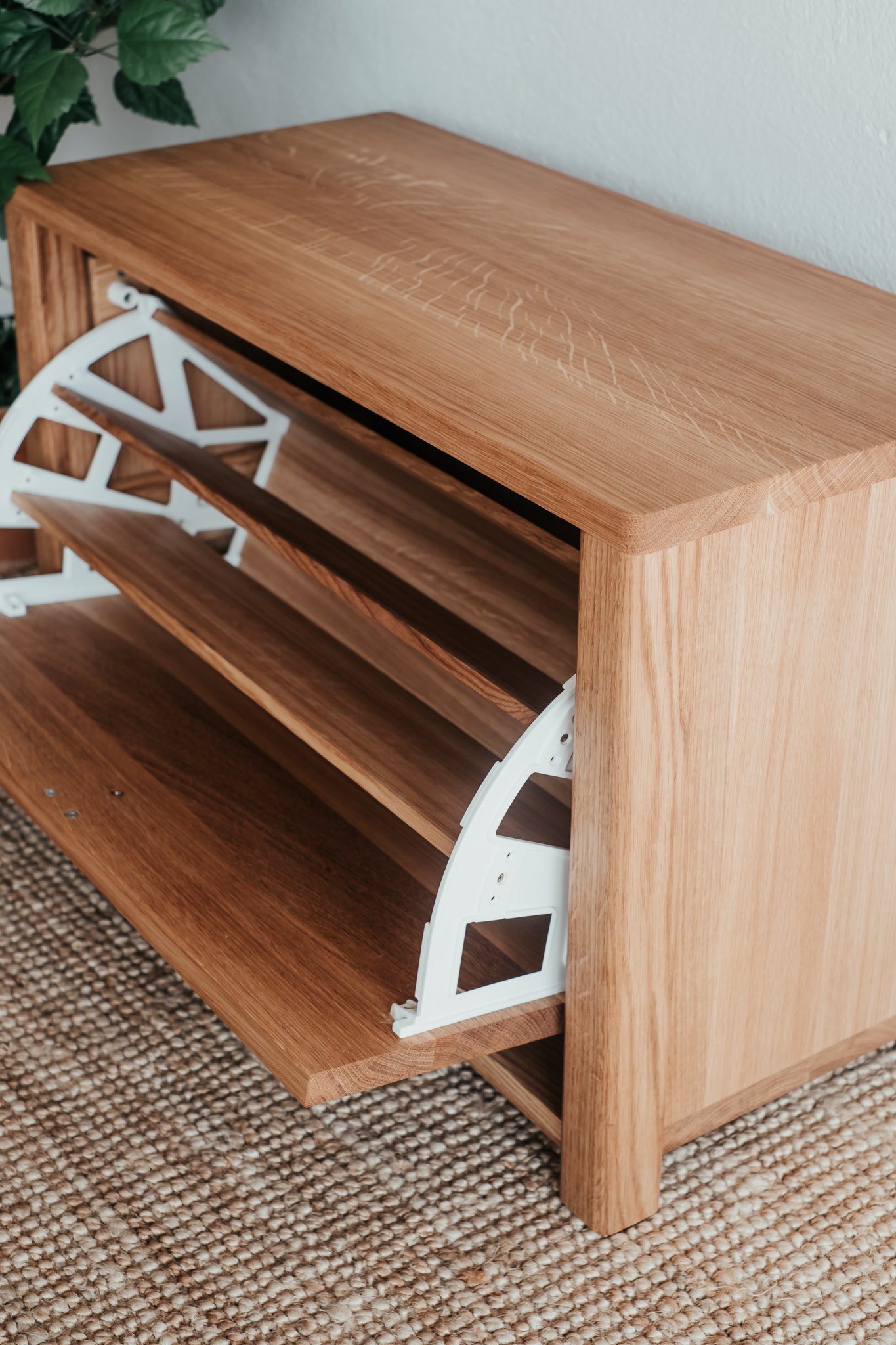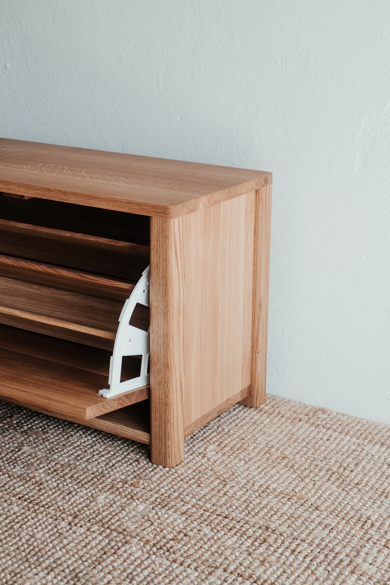 Praktický, elegantný a nenahraditeľný. Tento estetický a minimalisticky pôsobiacy botník z masívneho dubového dreva sa stane vašim nenápadným pomocníkom. Uložte doň svoje topánky a nechajte ho, aby sa razom stal dizajnovým kusom nábytku.