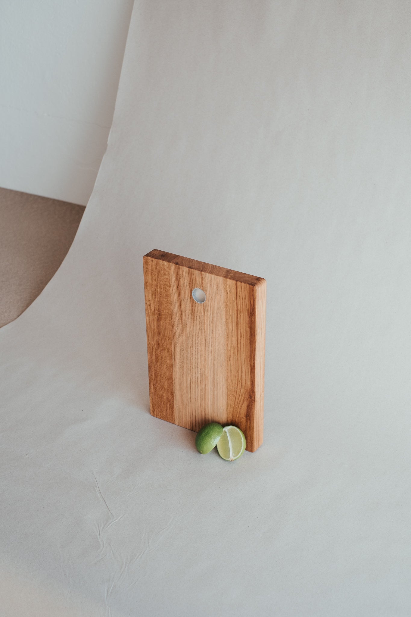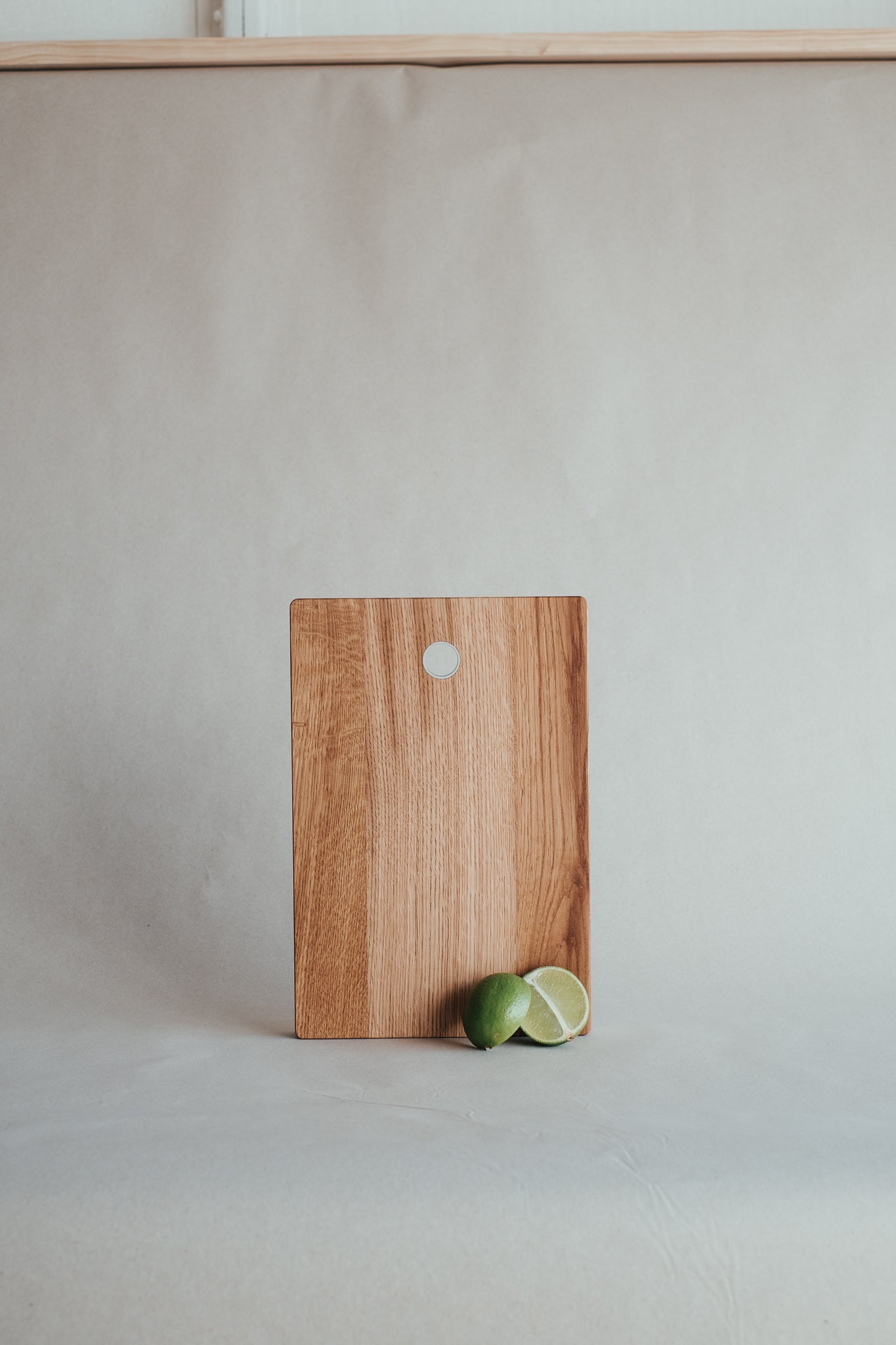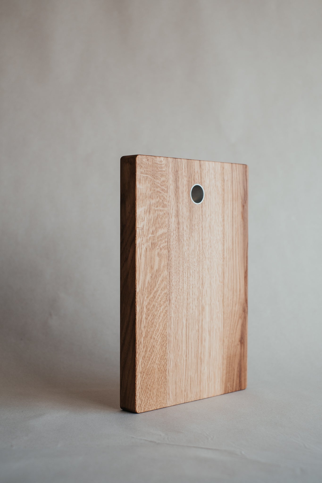 Čistá a praktická doska na krájanie z masívneho dubového dreva. Vďaka premyslene umiestnenému ušku ju môžete jednoducho zavesiť a mať vždy poruke.