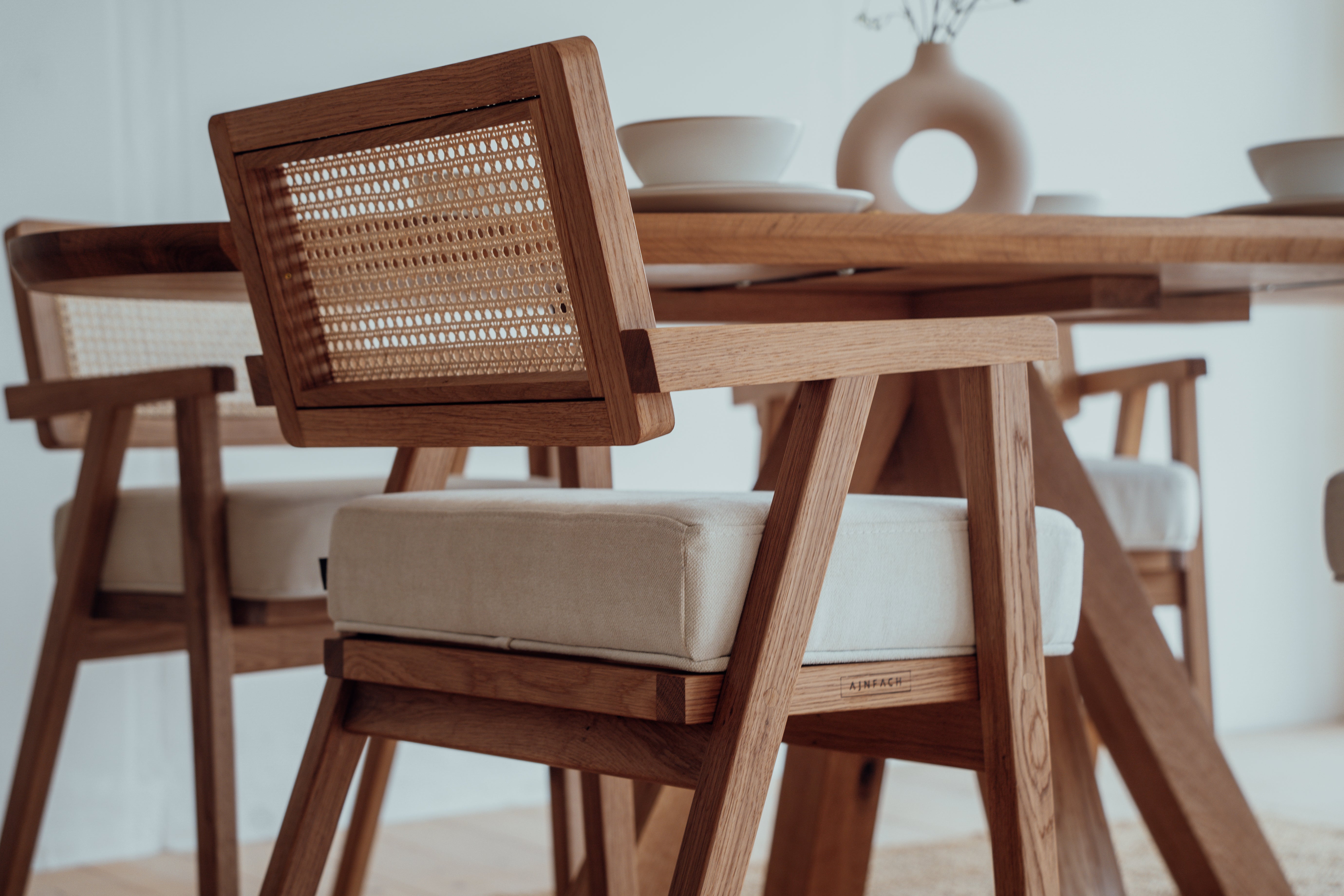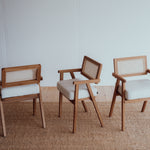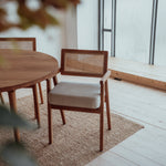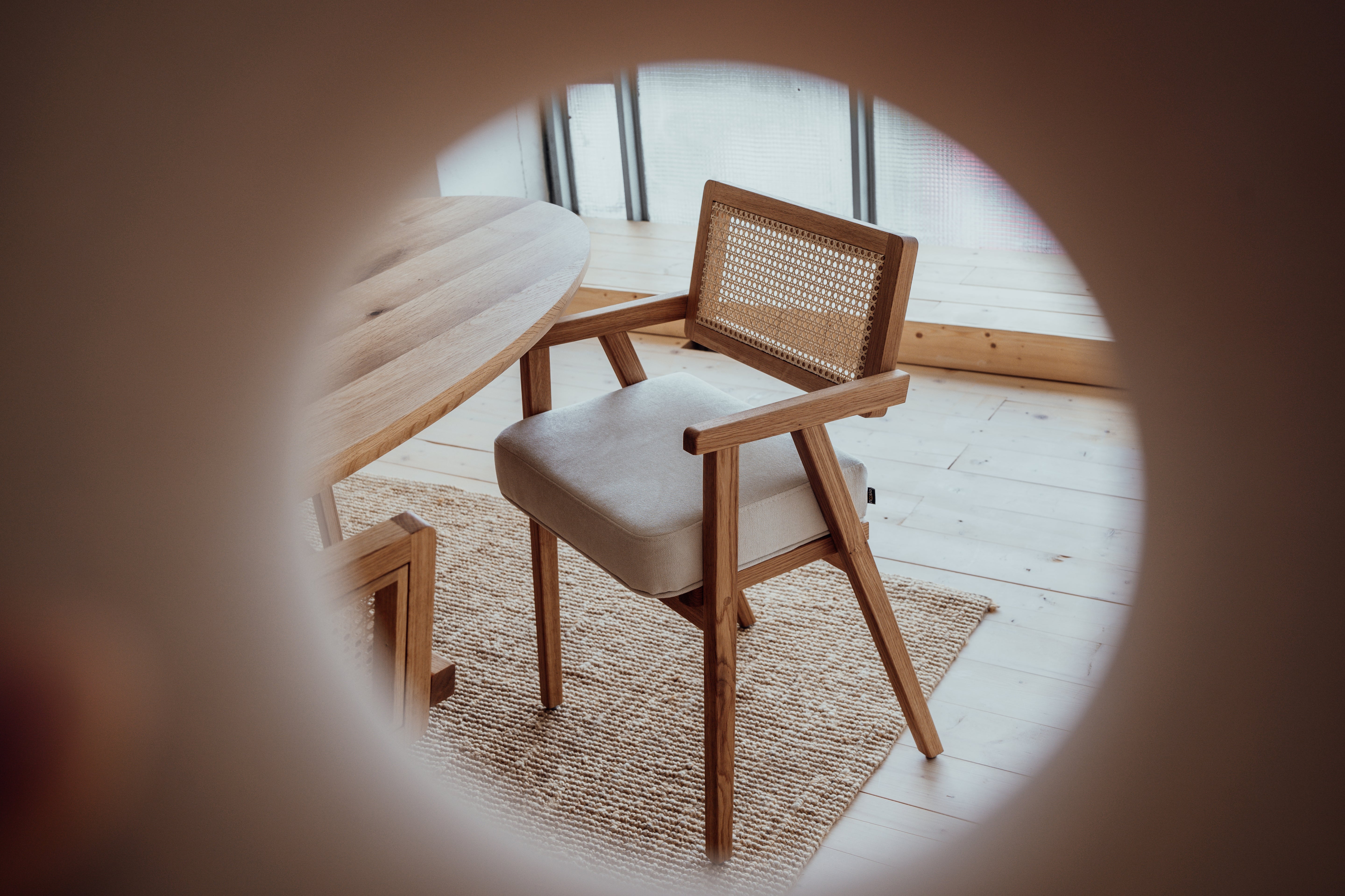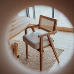 Dizajn, ktorý nezostarne, pohodlie, ktoré si vychutnáte. Táto jedálenská stolička z masívneho dubového dreva zaujme originálnym dizajnom v prémiovom prevedení. Kombinácia dreva s prírodným ratanom na operadle aj sedáku, ktorý je zároveň potiahnutý prvotriednou talianskou tkaninou.