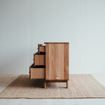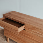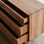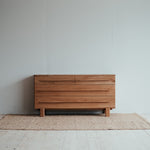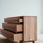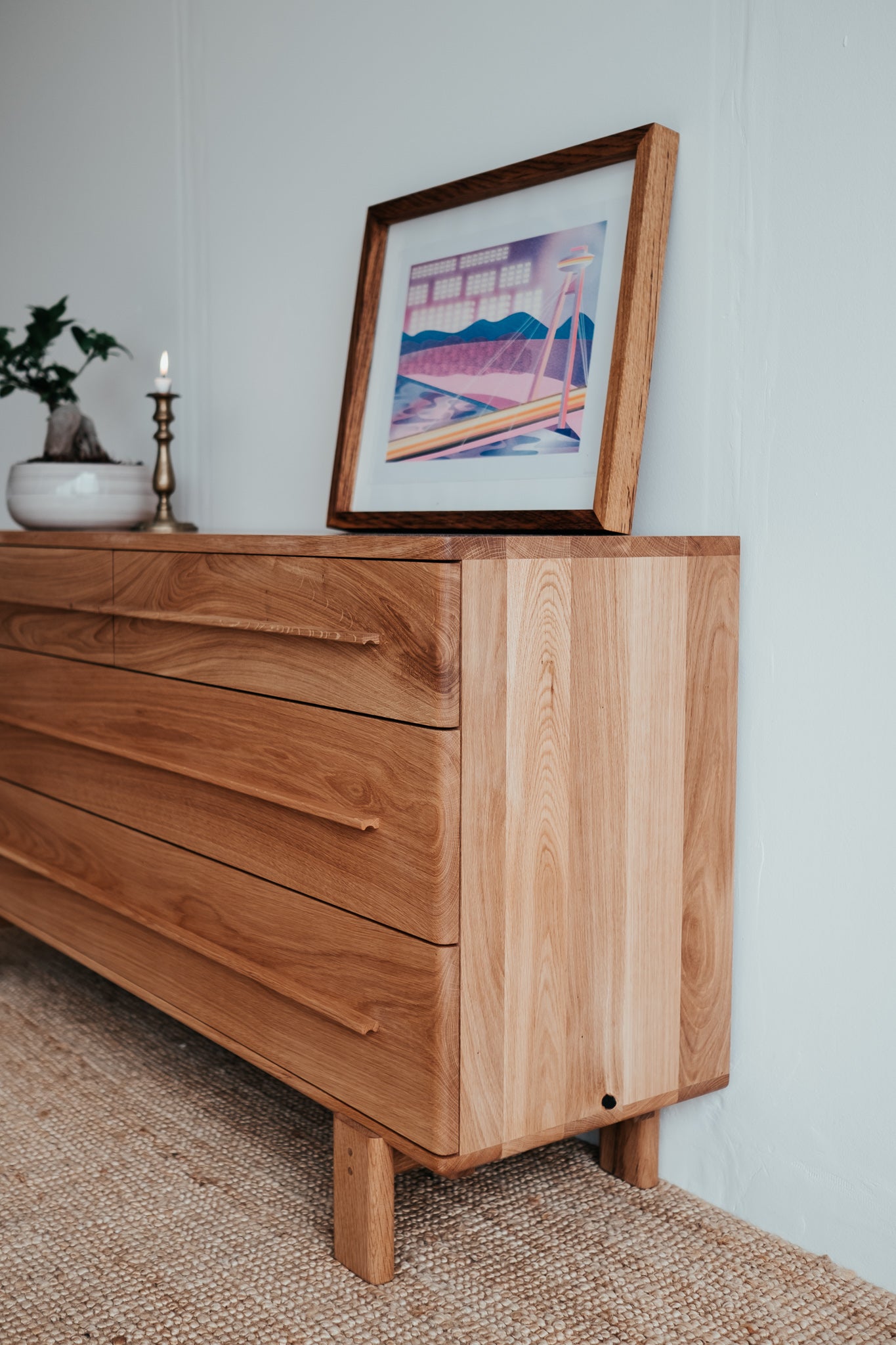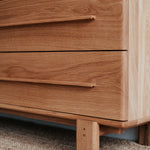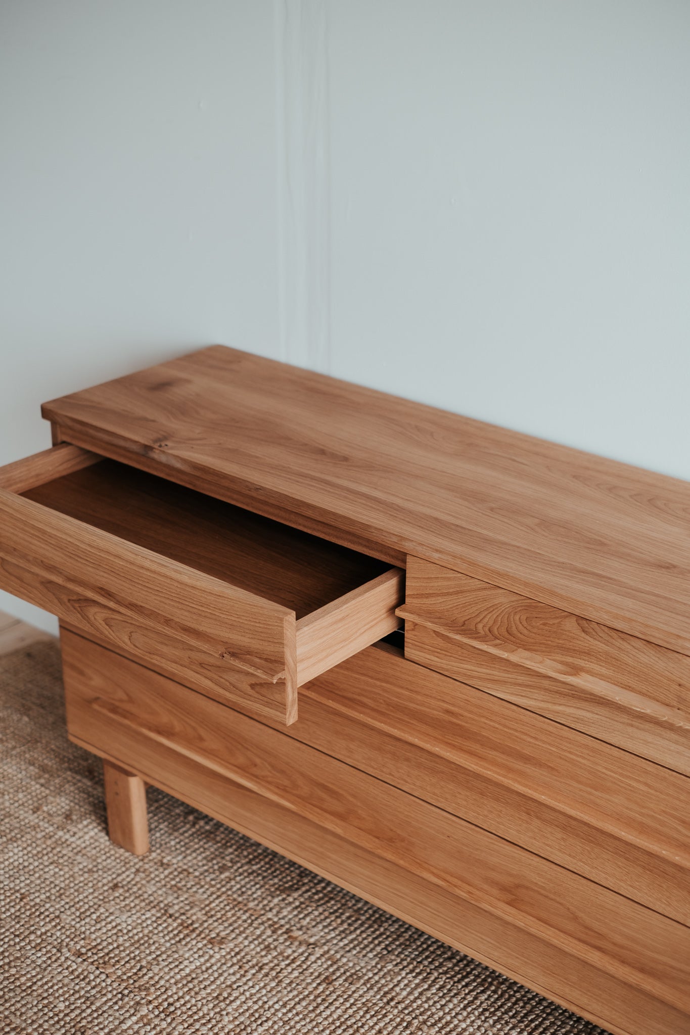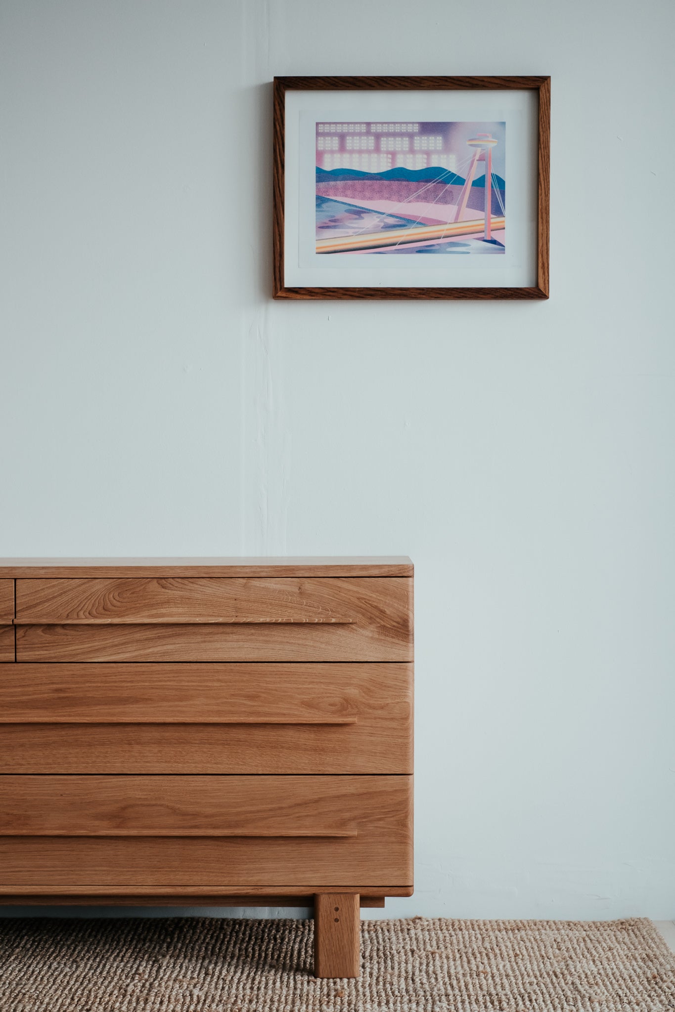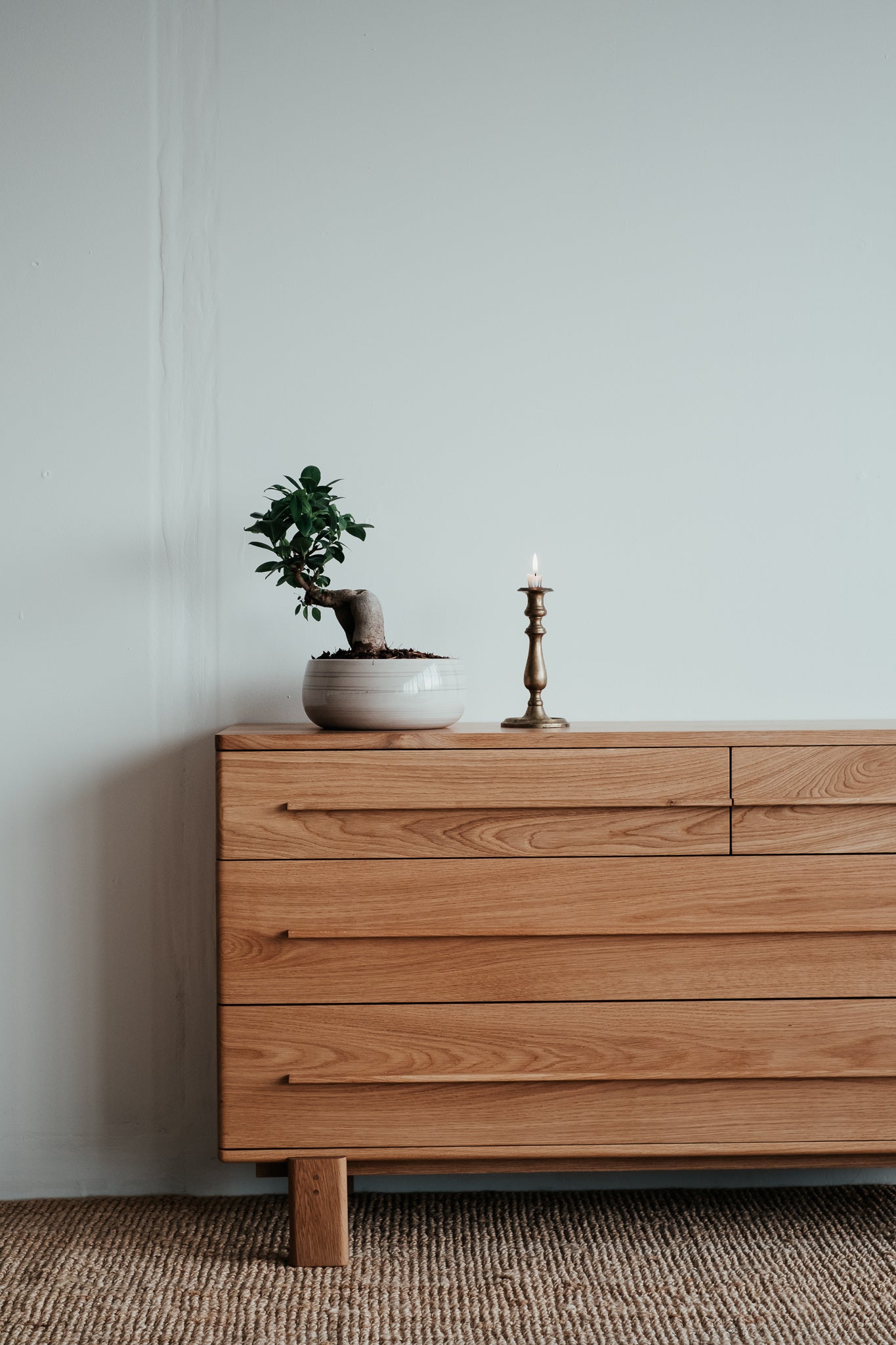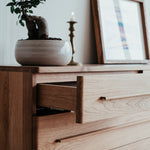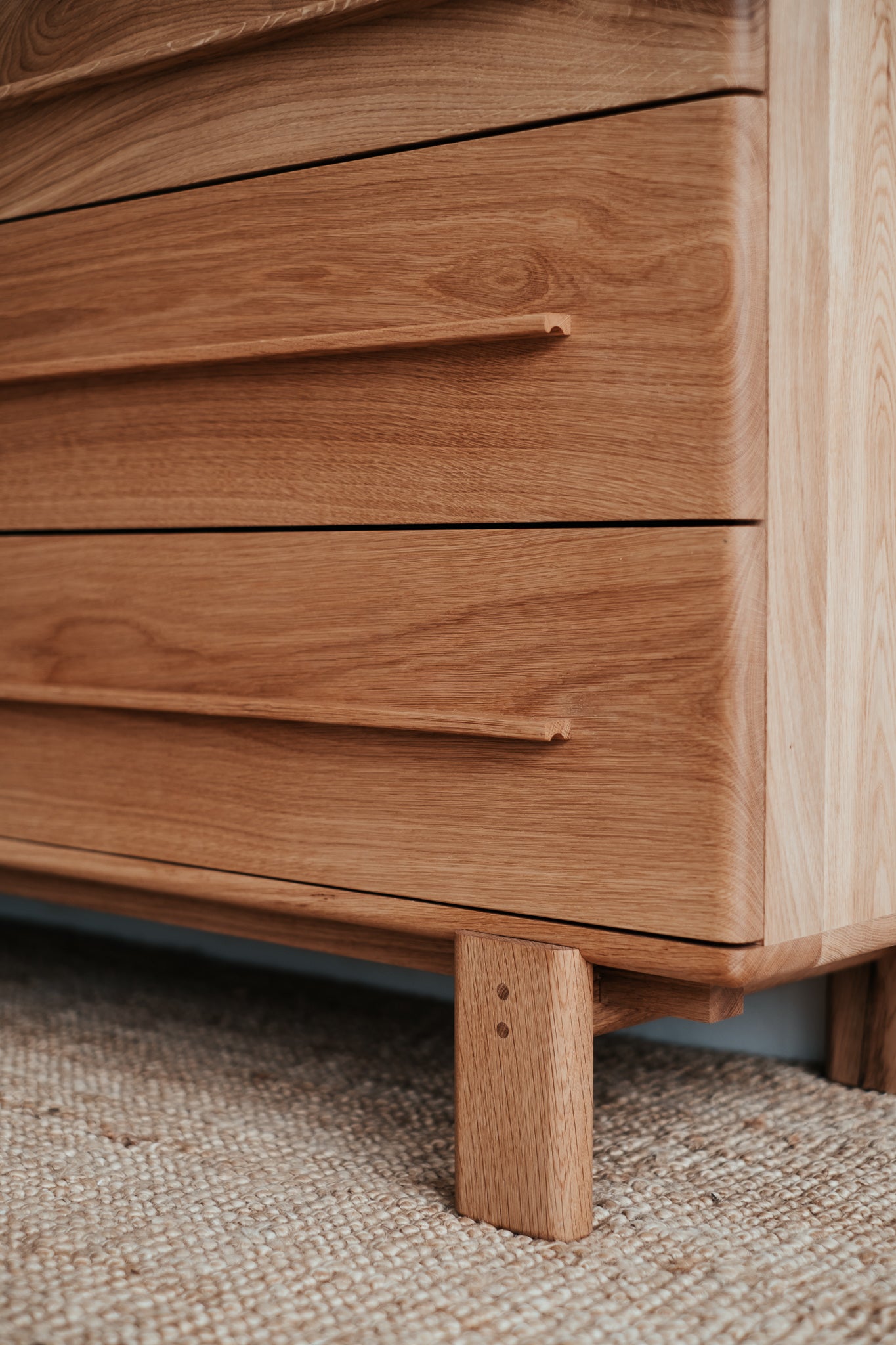 Praktická v každom ohľade a dizajnová z každého uhlu. To je naša masívna komoda z dubového dreva, ktoré sme použili na všetky jej časti. Vďaka tomu získala jedinečný vzhľad a pokojný, harmonický charakter. Štvorica zásuviek s pomalým dojazdom vám zase poskytne dostatok úložného priestoru.