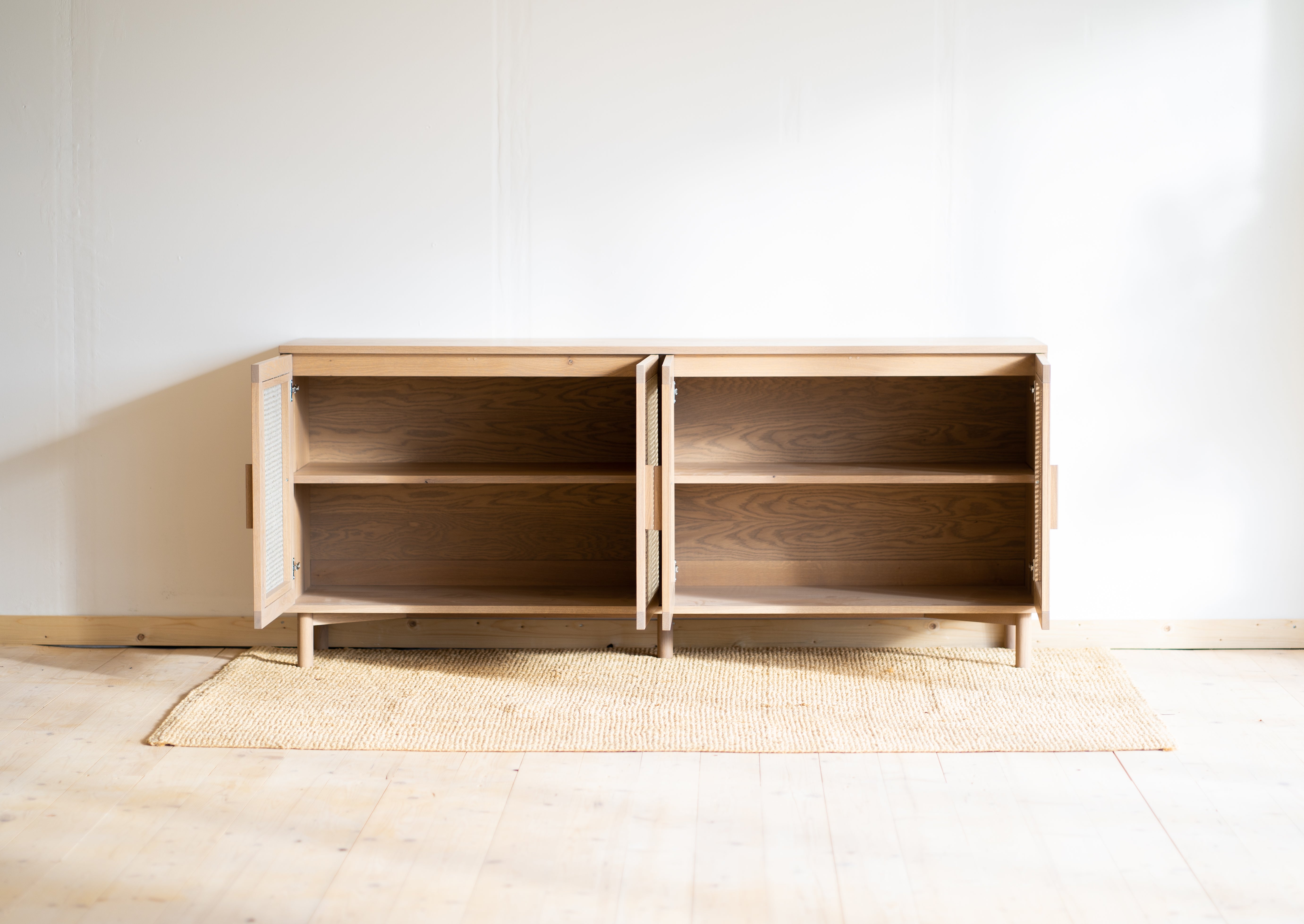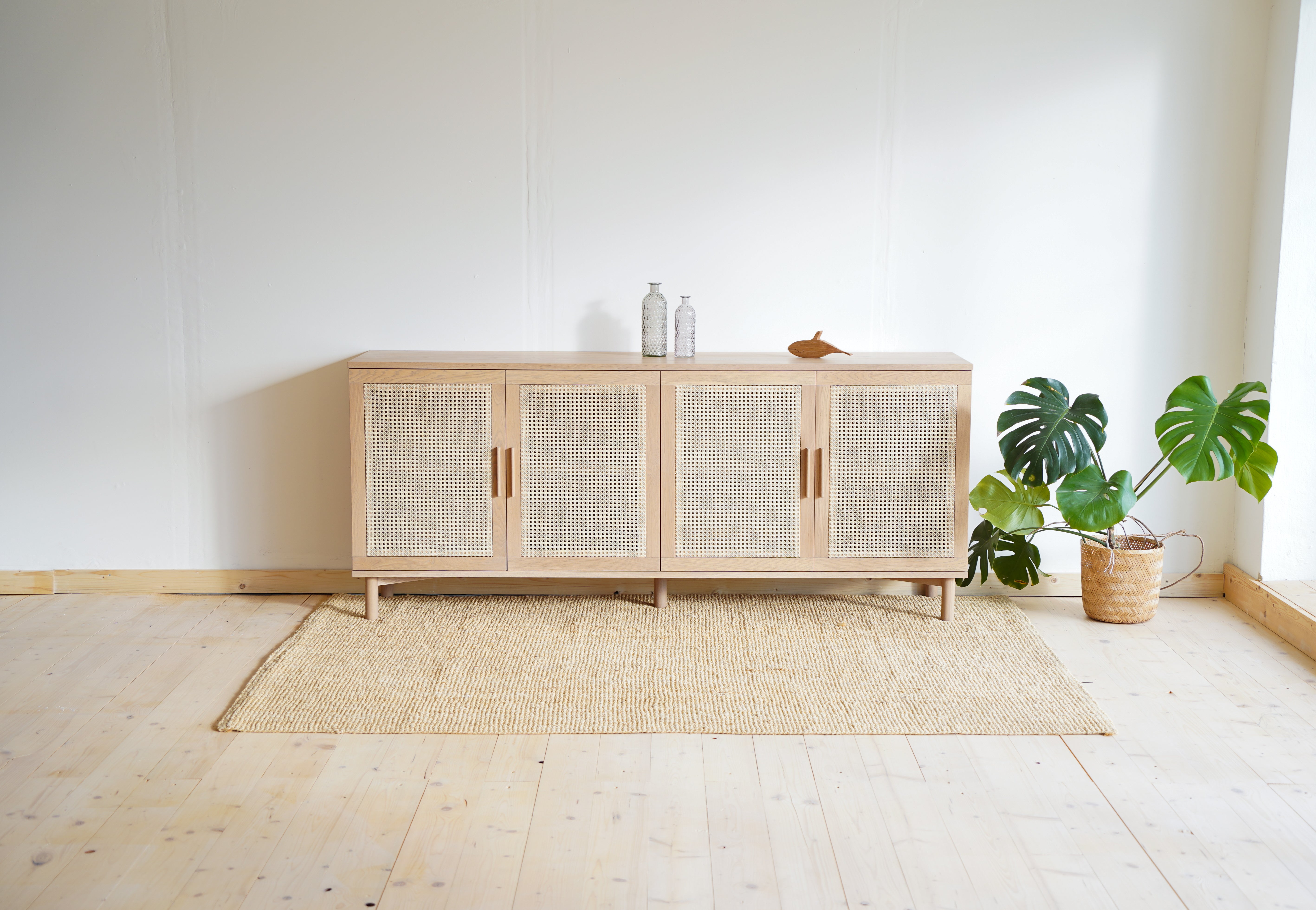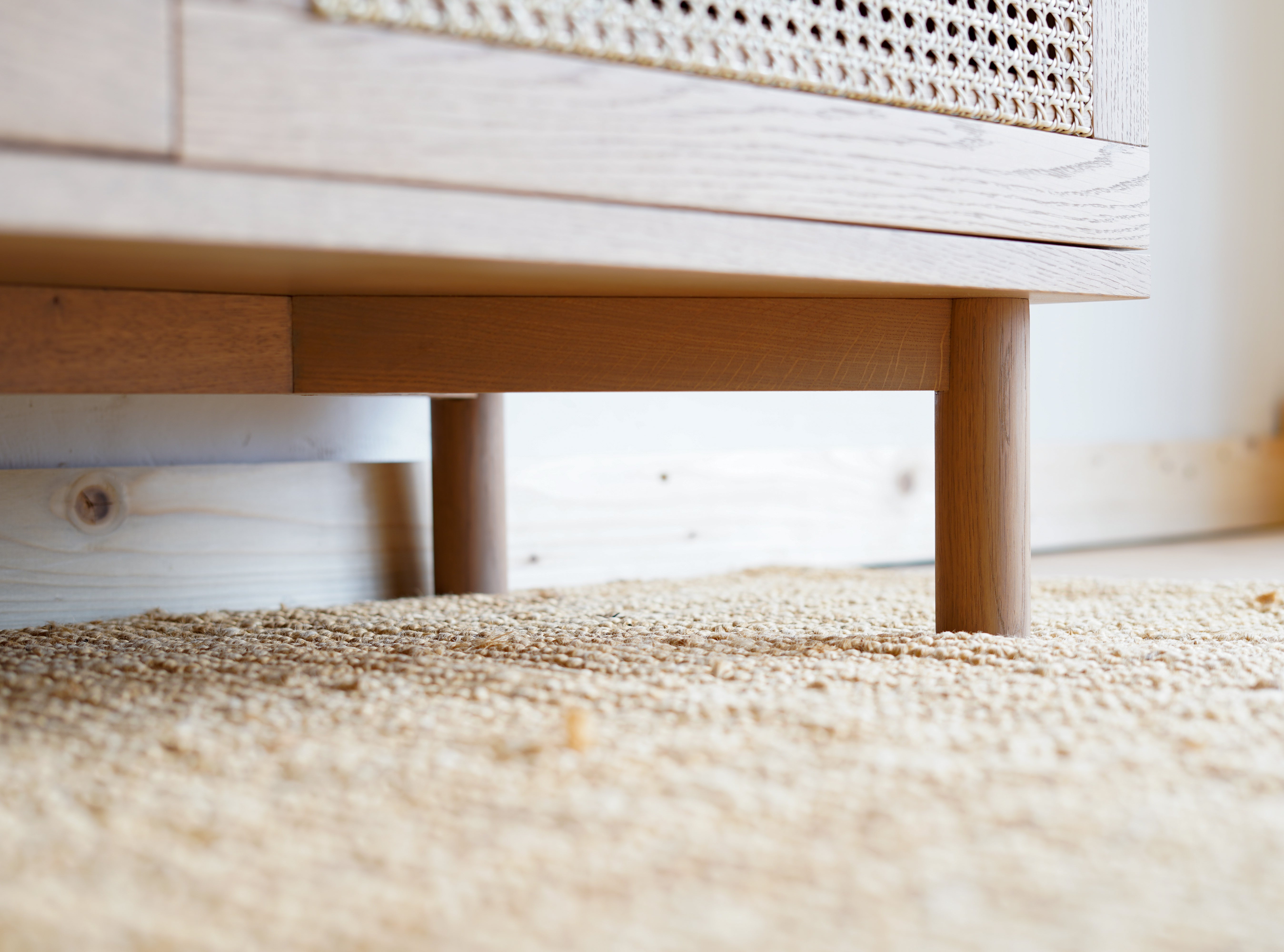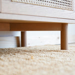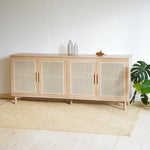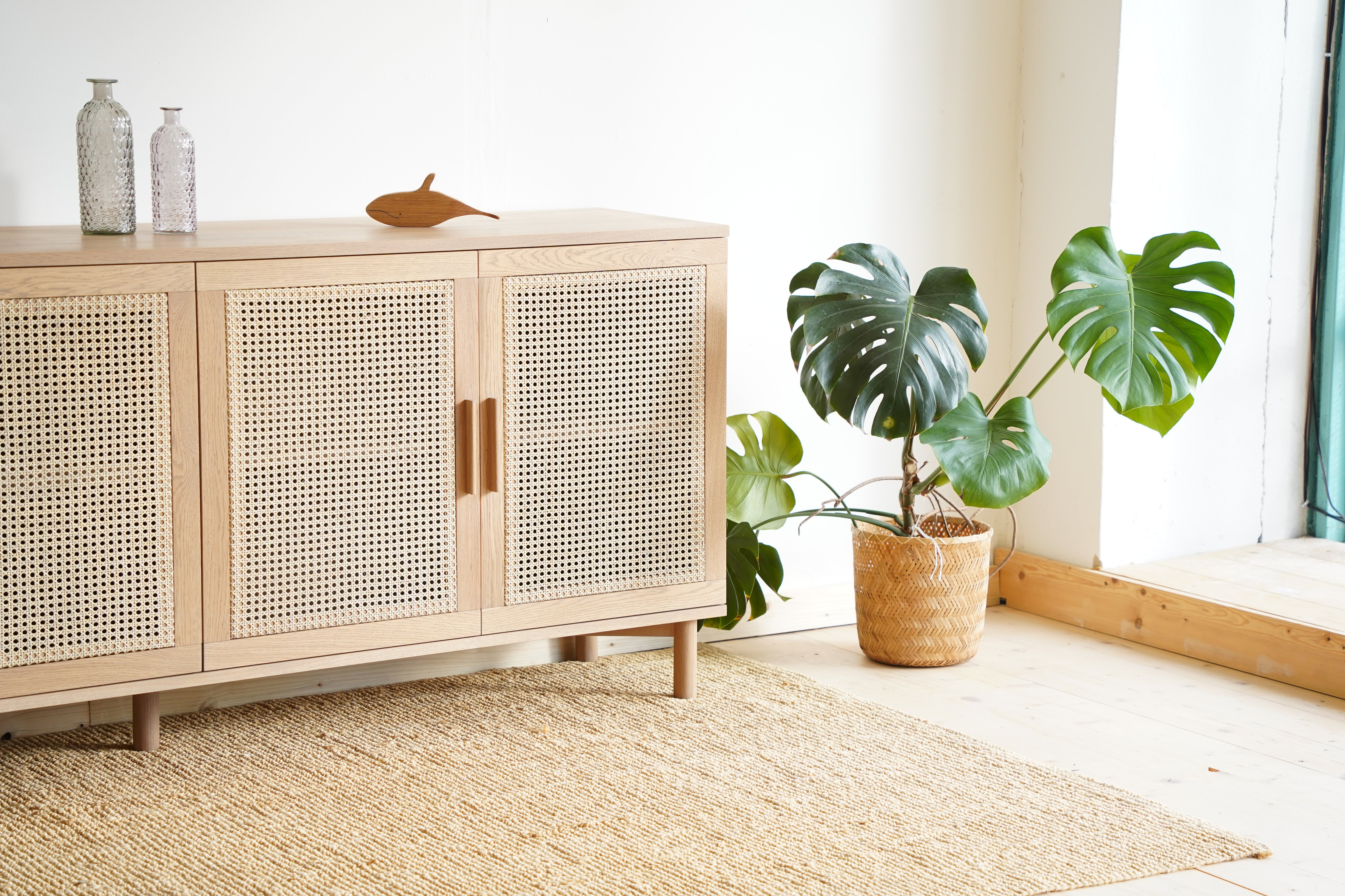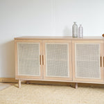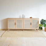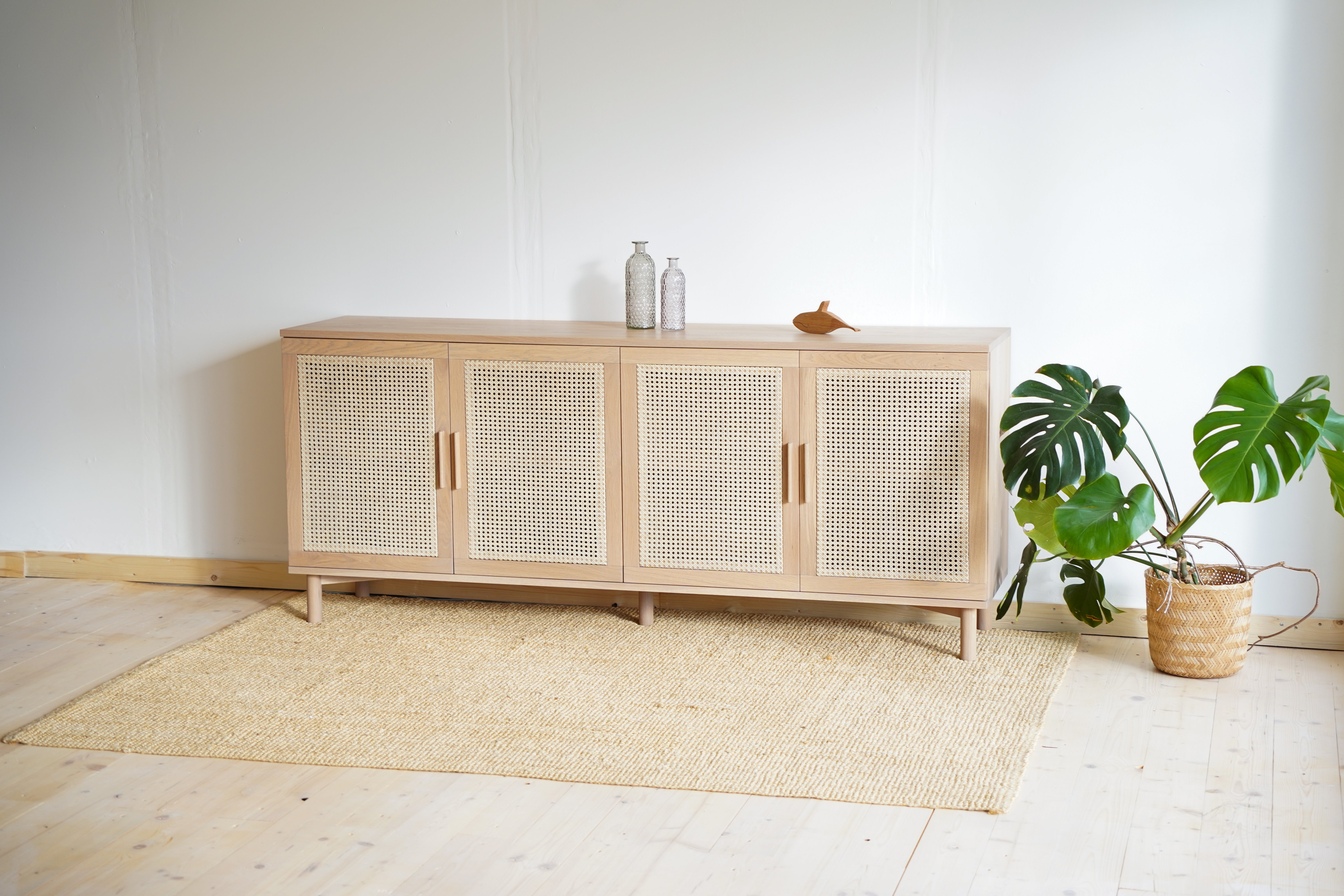 Výnimočné spojenie, ktoré vás osloví funkčnosťou aj dizajnom. Spojili sme masívne dubové drevo s prírodným ratanom a je z toho táto unikátna komoda na nenápadných dubových nožičkách. Jemné a čisté línie komody oživuje štvorica ratanom vyplnených dvierok, vnášajú do celkového dojmu originálny prvok.