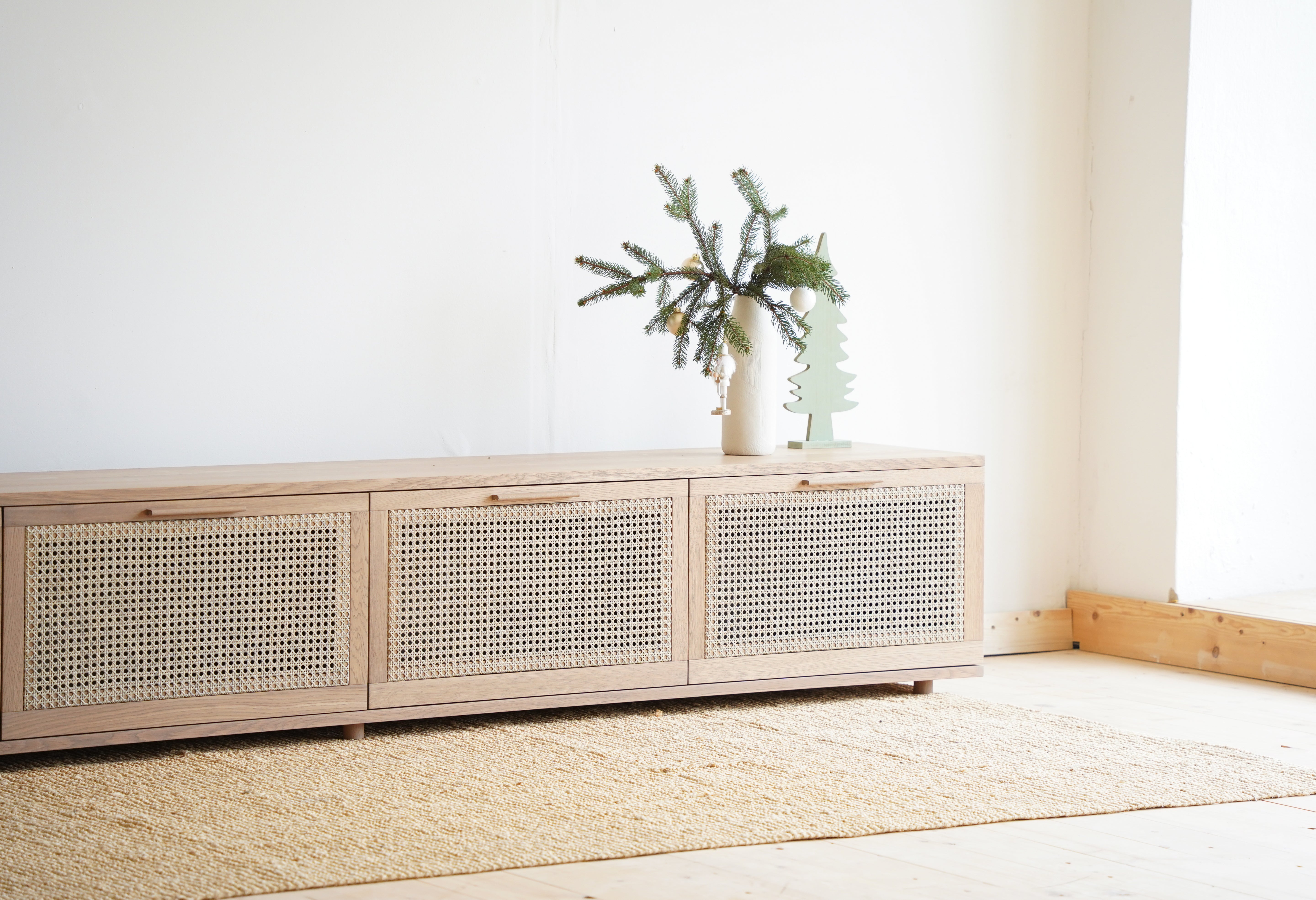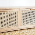 Neprehliadnuteľný a nenapodobiteľný. Dokonalý a krásny príklad toho, aké funkčné vedia byť krásne veci. Jemné krivky podporujú krásu a jedinečnosť masívneho dubového dreva a ratanová výplň dvierok sa dopĺňa atraktívny, nevšedný a zapamätateľný vzhľad.
