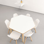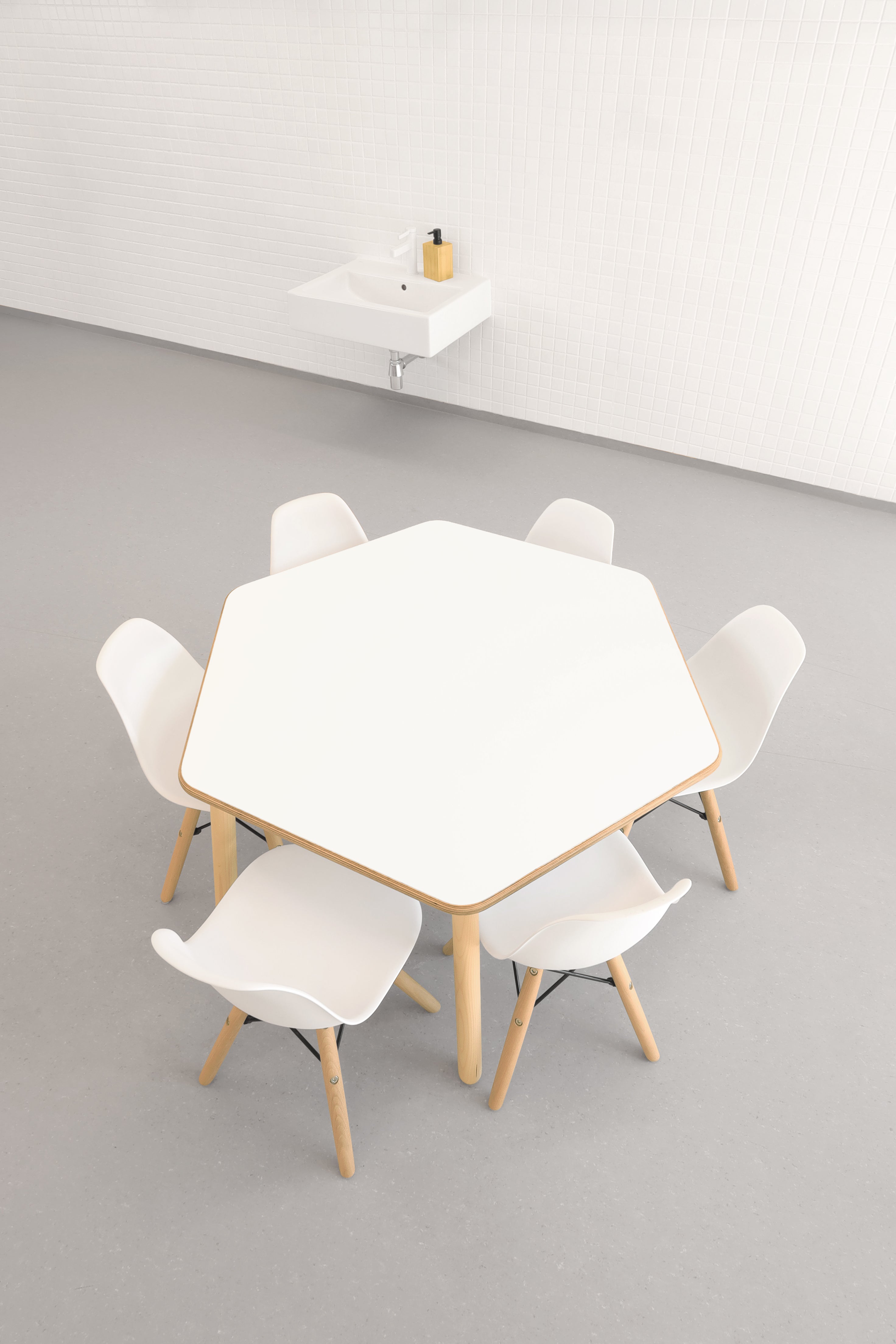 Krásny, praktický a nezameniteľný. Taký je tento detský jedálenský stolík z vysoko kvalitnej smrekovej preglejky. Jeho šesťuholníková doska poskytuje deťom veľa priestoru a ideálne rozmiestnené nohy z masícneho smrekového dreva ich v ničom neobmedzujú. Tomu sa hovorí sloboda.