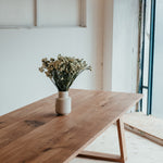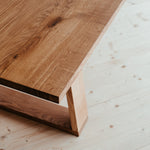 Masívny a mohutný ako dub, z ktorého pochádza a pritom stále vzdušný a nevšedný vďaka unikátnemu dizajnu lichobežníkových nôh. Spája v sebe užitočnosť s estetikou, silu s jemnosťou. Nechajte vyniknúť jeho jedinečnosť a tešte sa z jeho krásy.