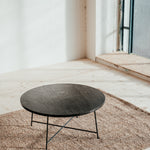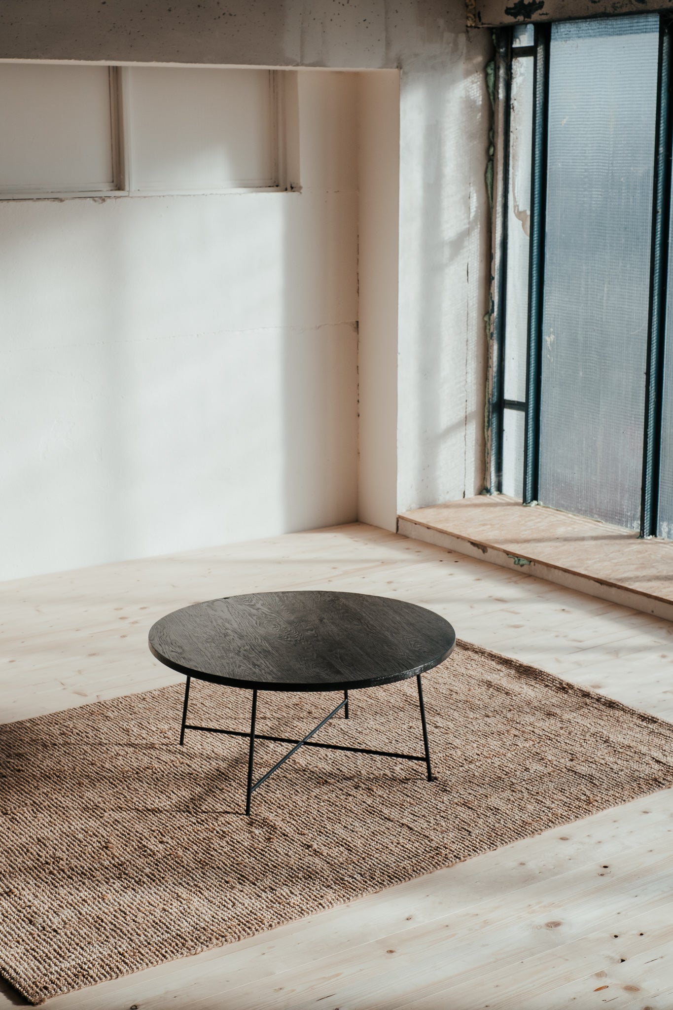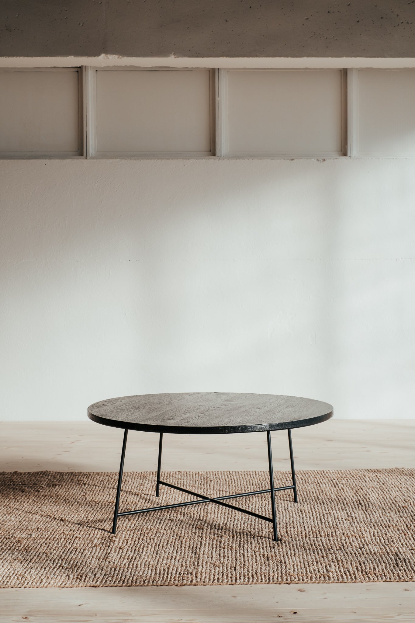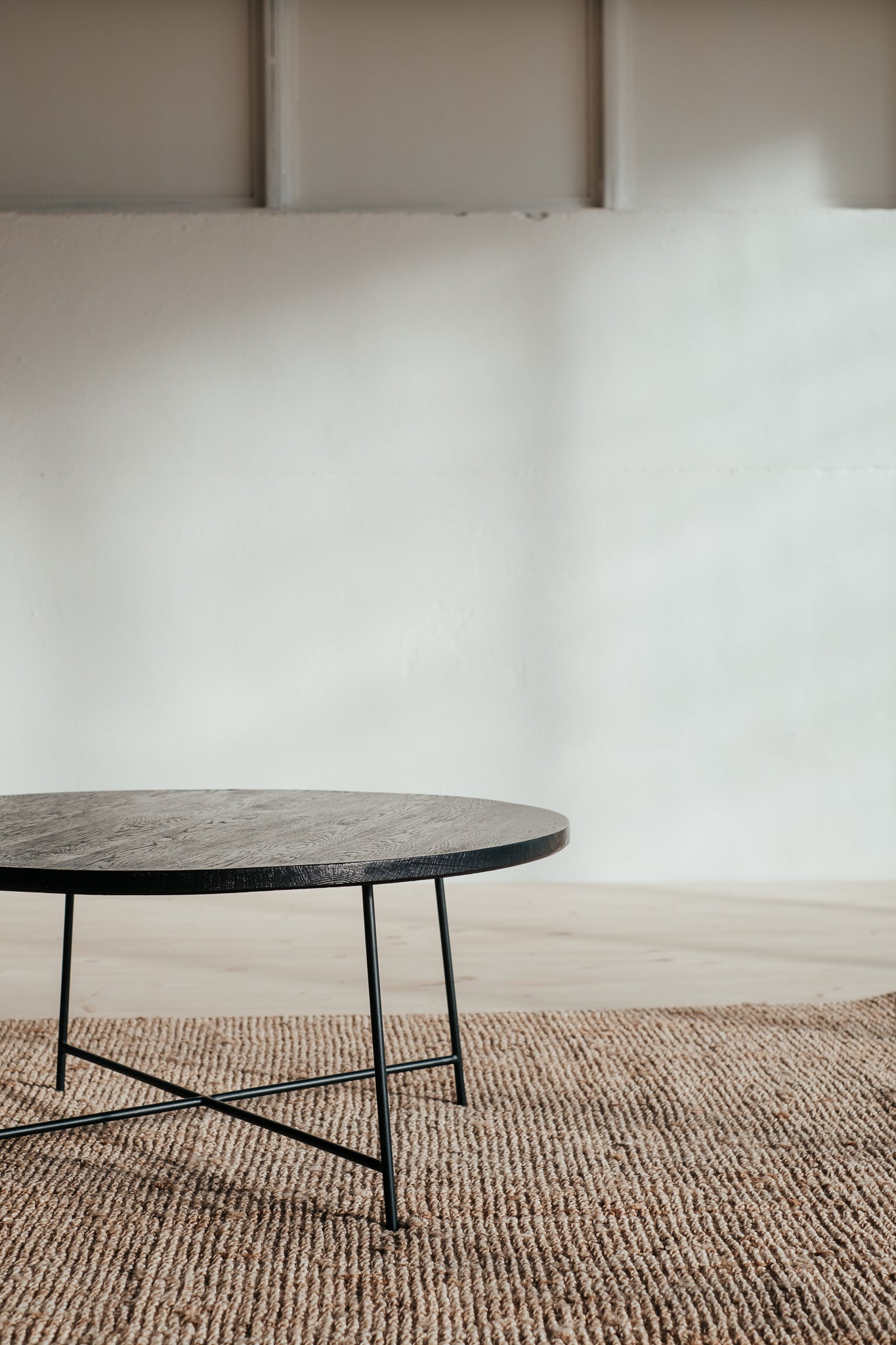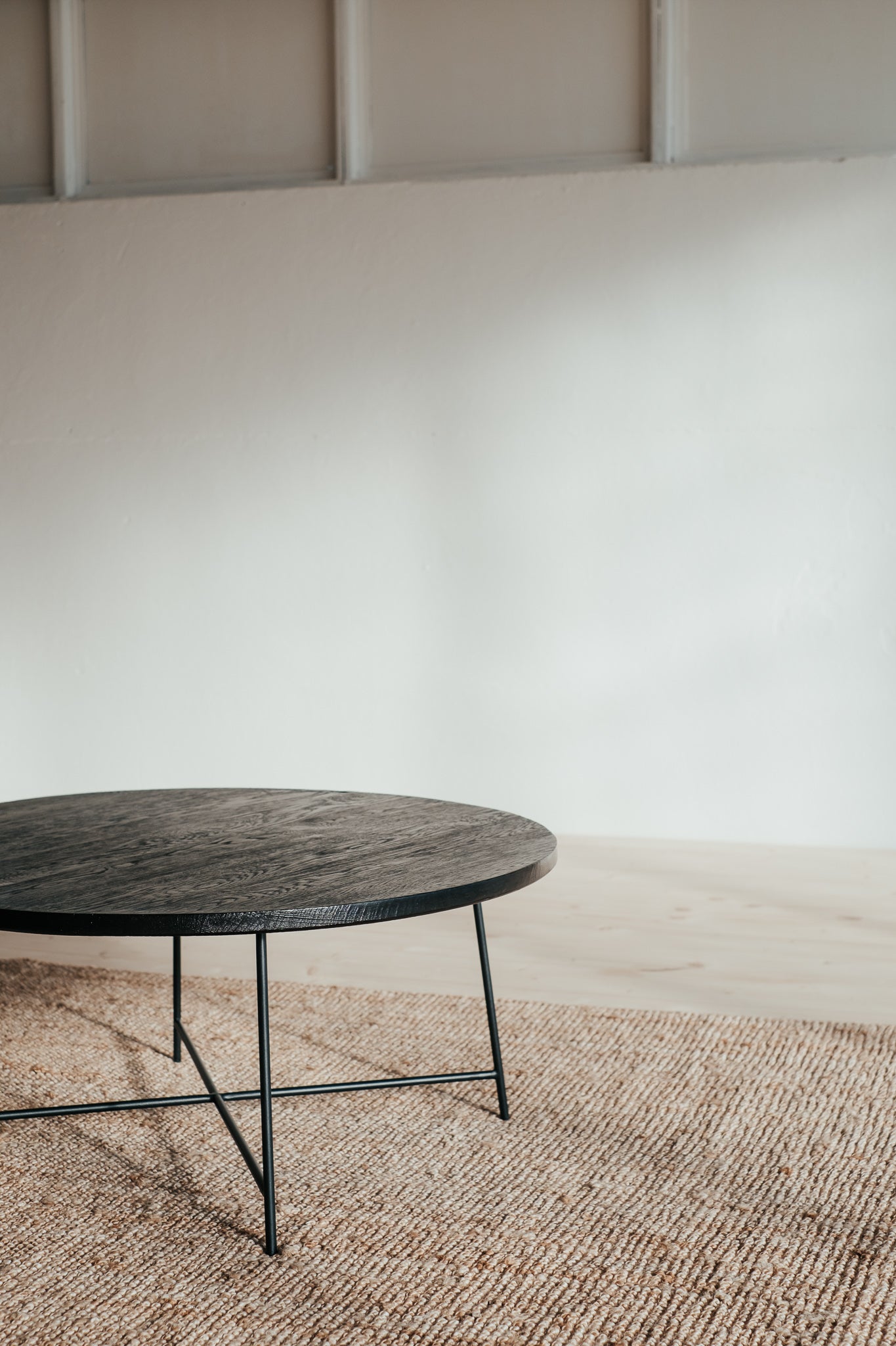 Elegantnosť sama. Masívne dubové drevo v estetickom kruhovom prevedení s čiernou kartáčovanou povrchovou úpravou, ktorá upúta hneď na prvý pohľad. Dizajnový minimalizmus stola dopĺňajú jednoduché kovové nohy rovnako zafarbené do čiernej.