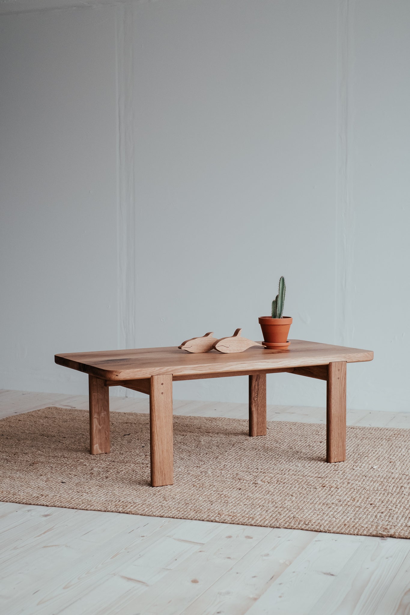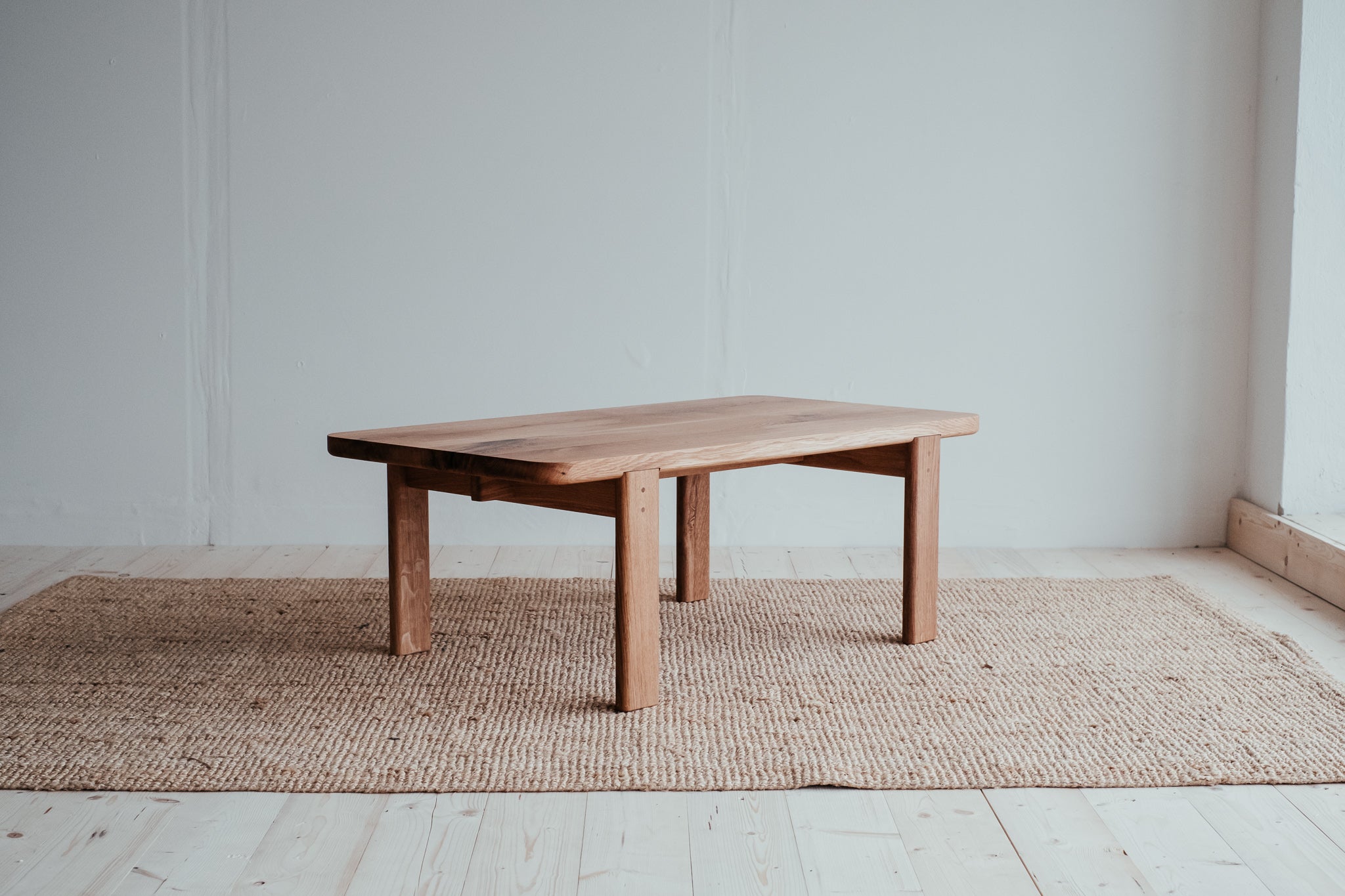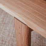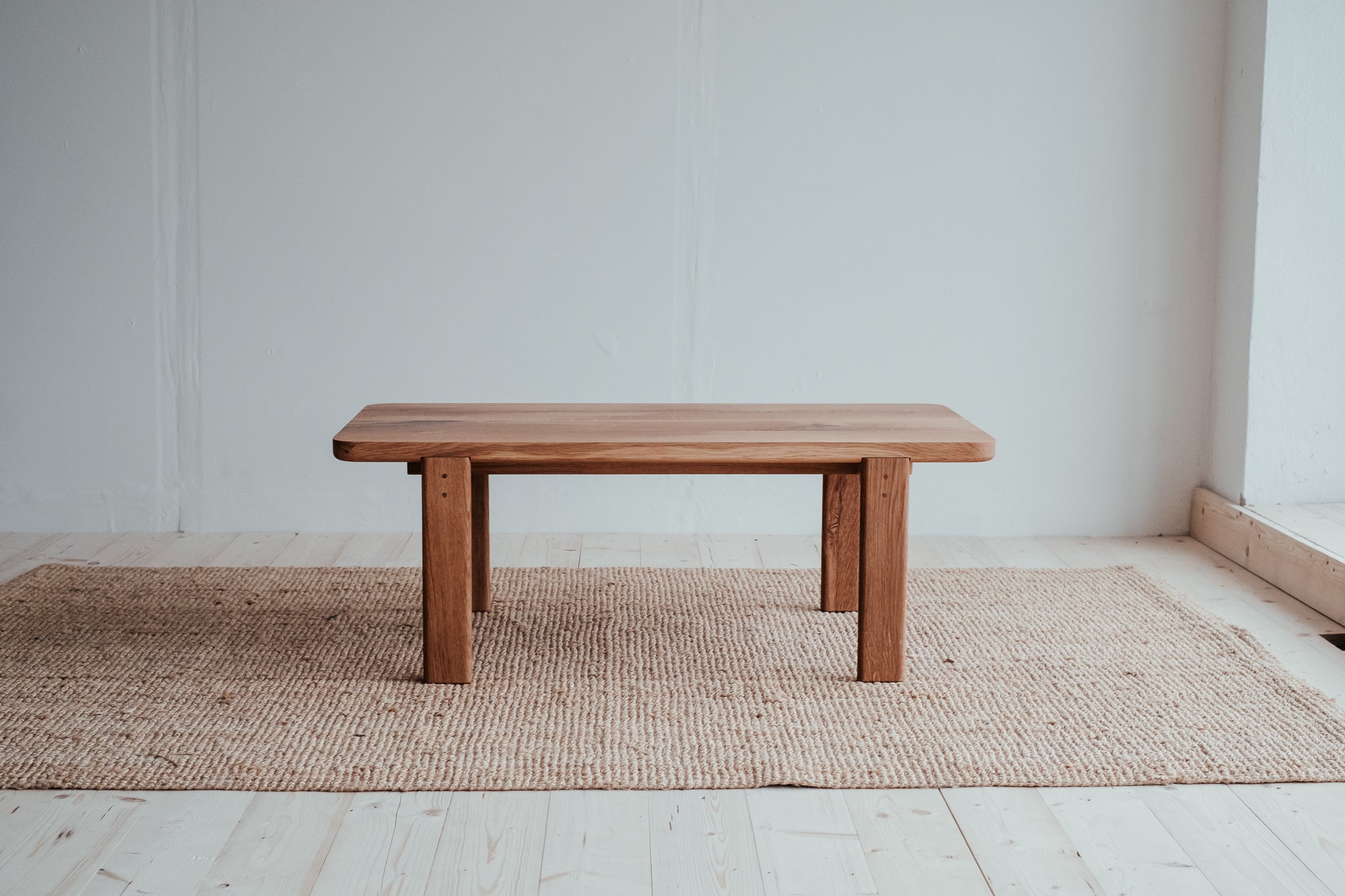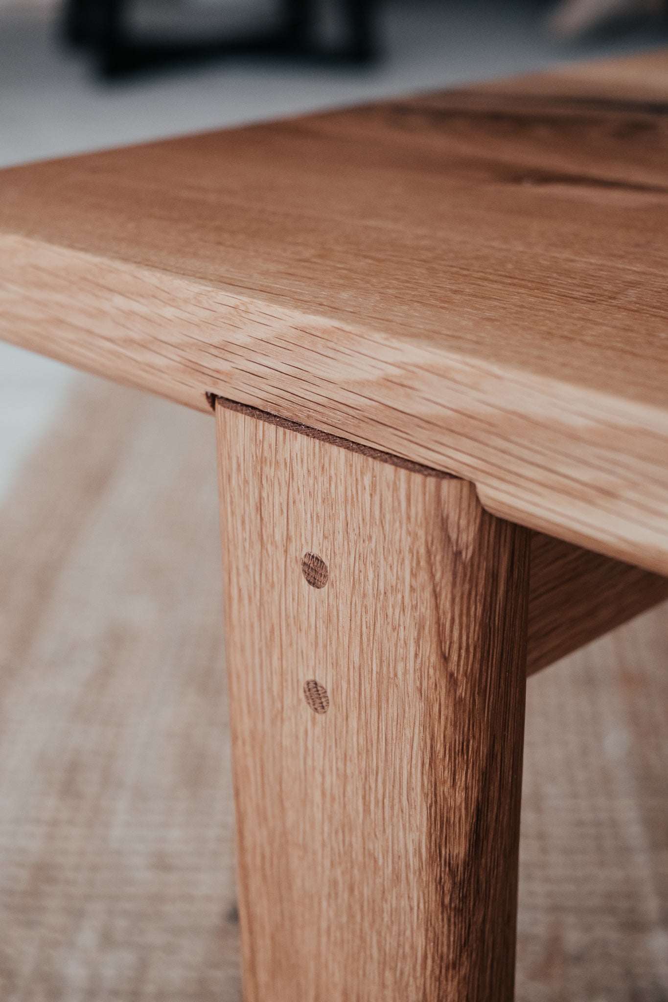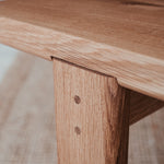 Precízne spracovaný stolík, ktorý vyniká krásou dreva, z ktorého pochádza. Pohlaďte jeho dokonale jemný povrch a pokochajte sa nádhernou štruktúrou masívneho dubového dreva, z ktorého je doska, nohy aj kolíky, ktorými je spojený.
