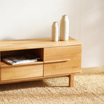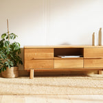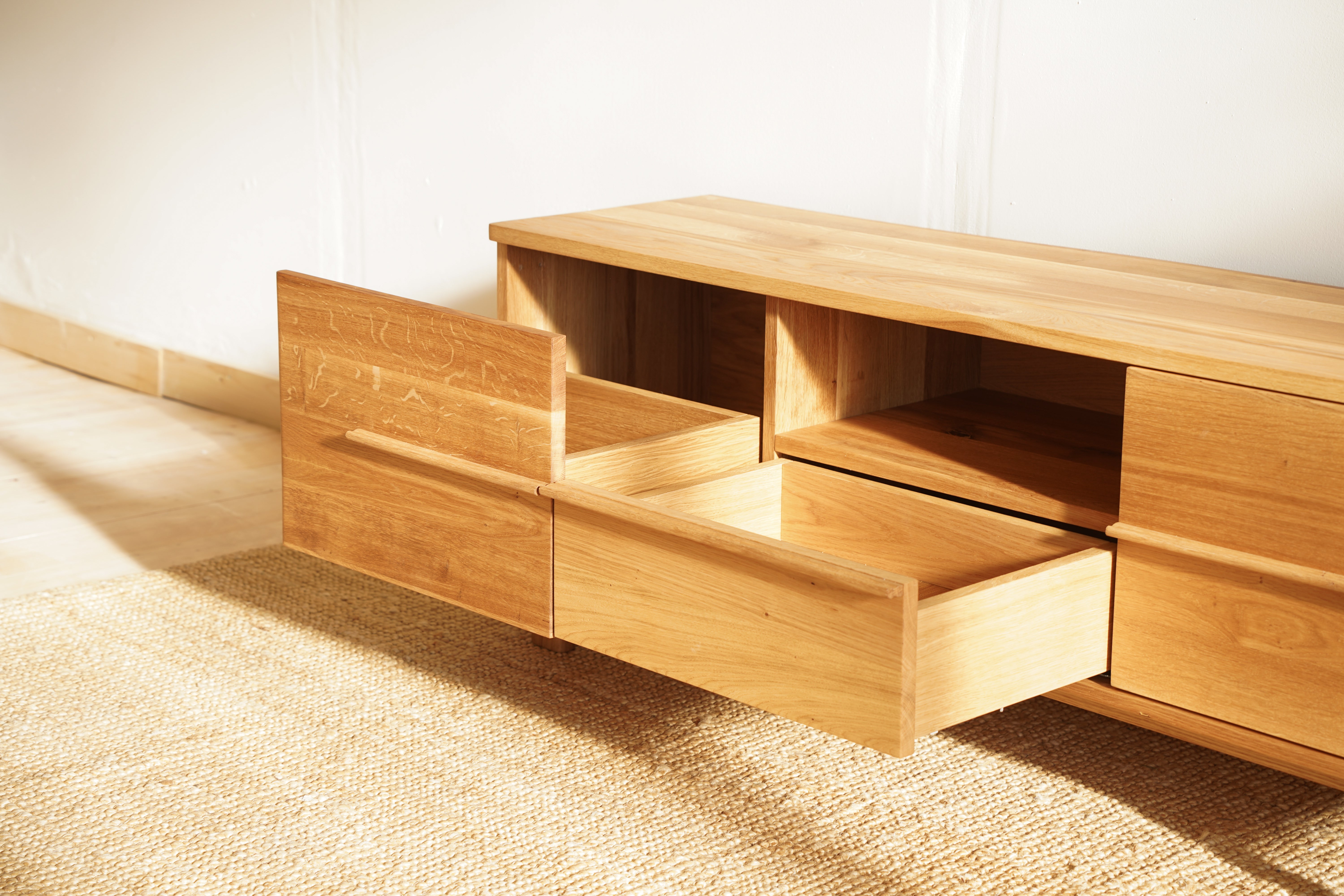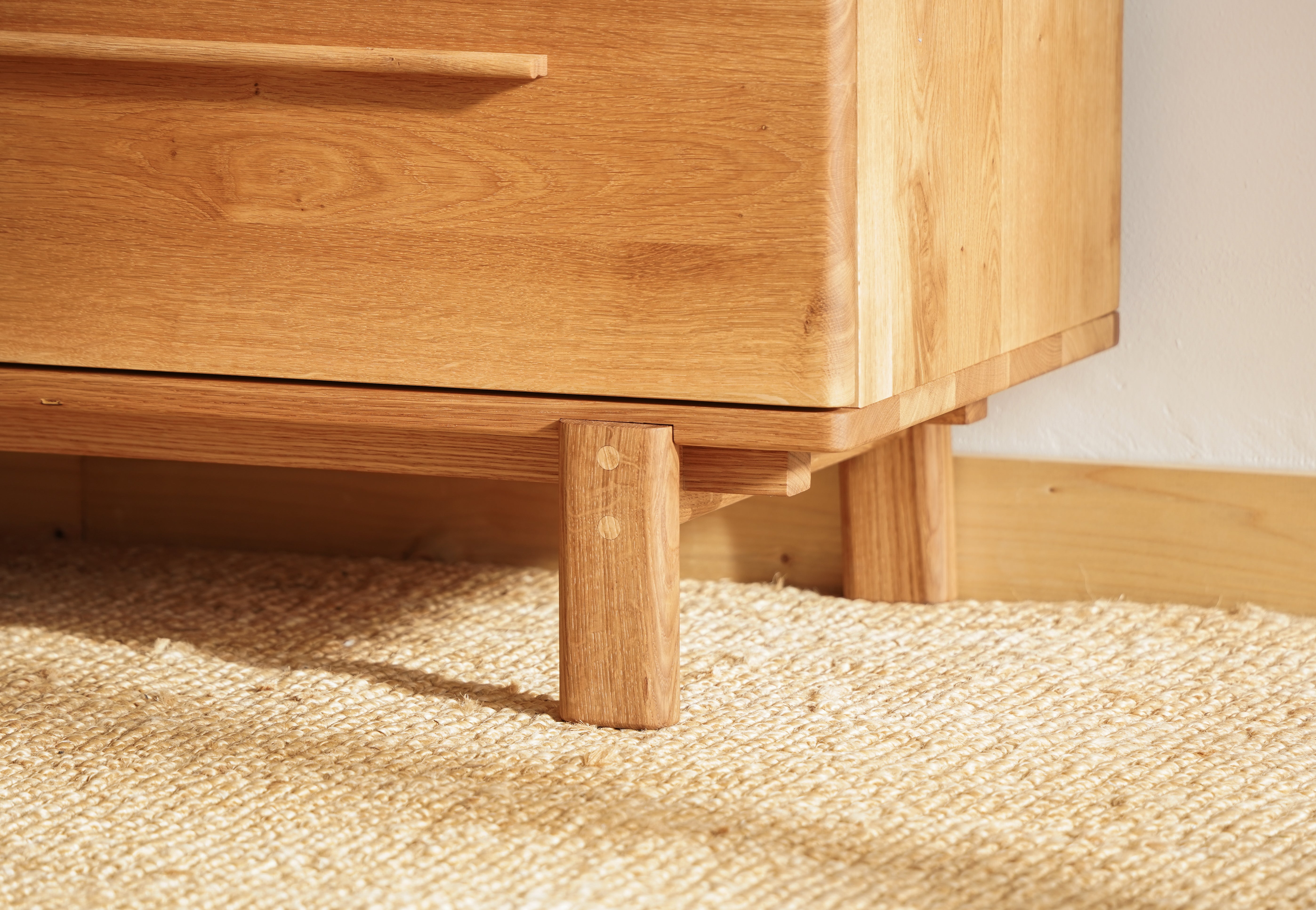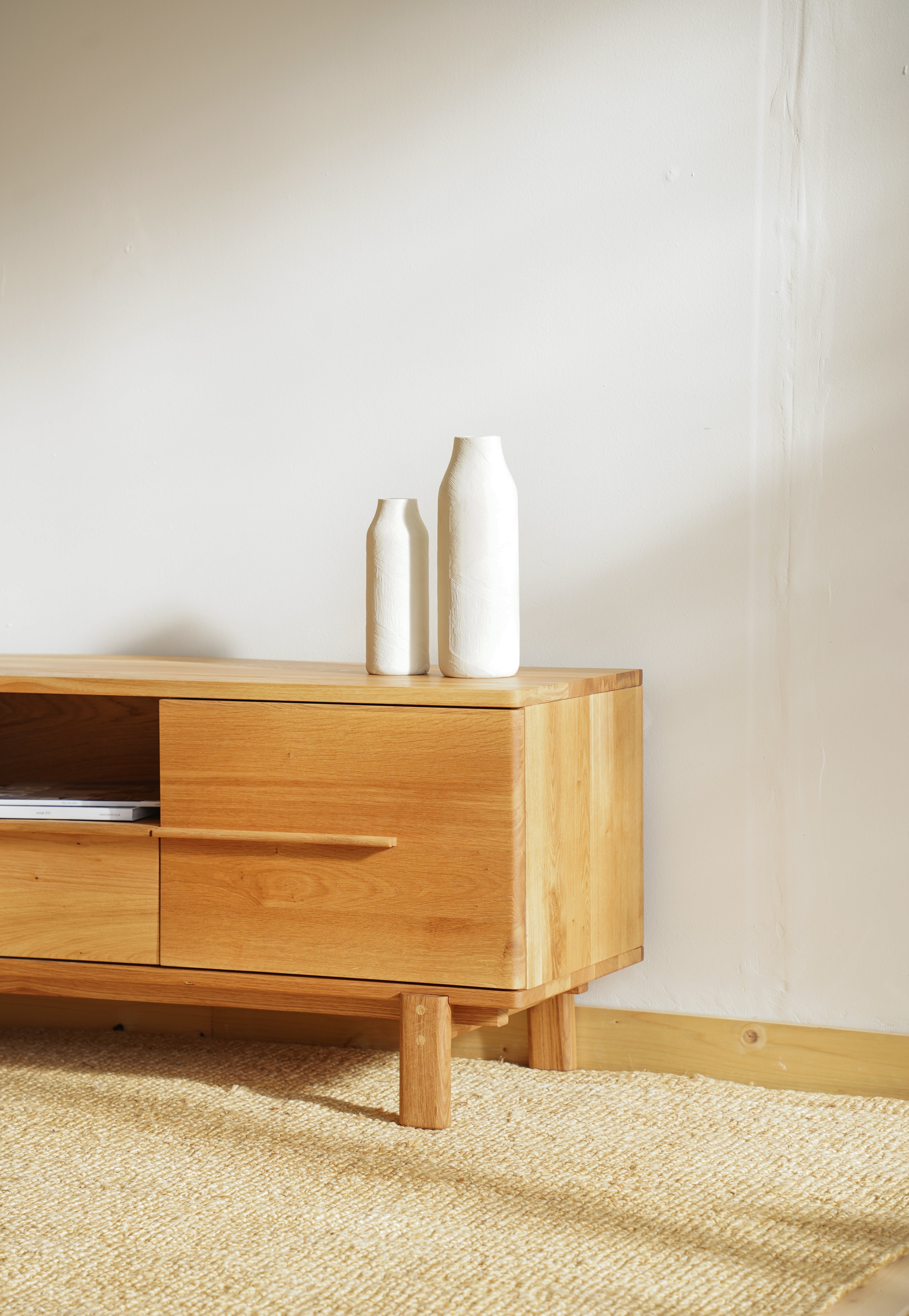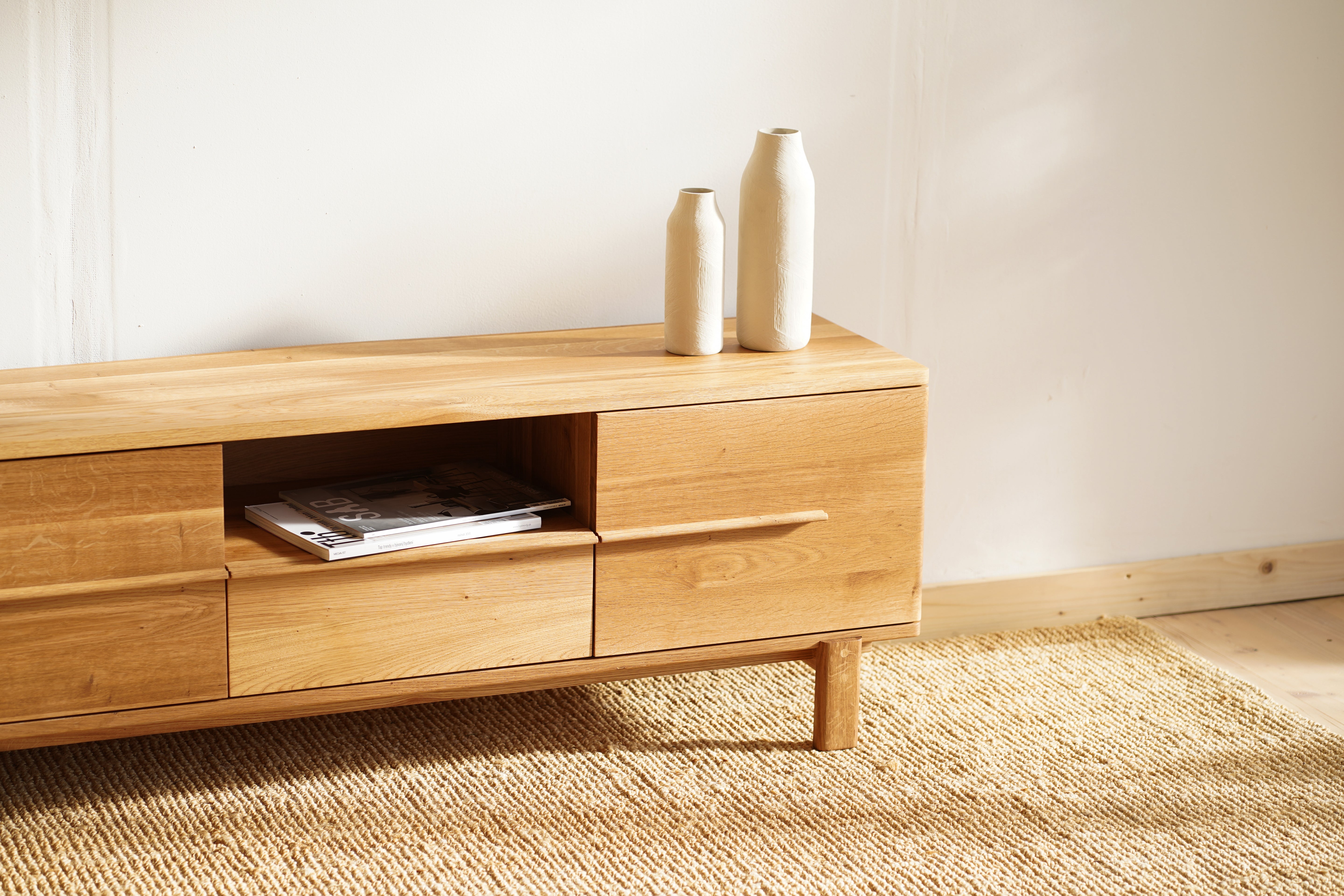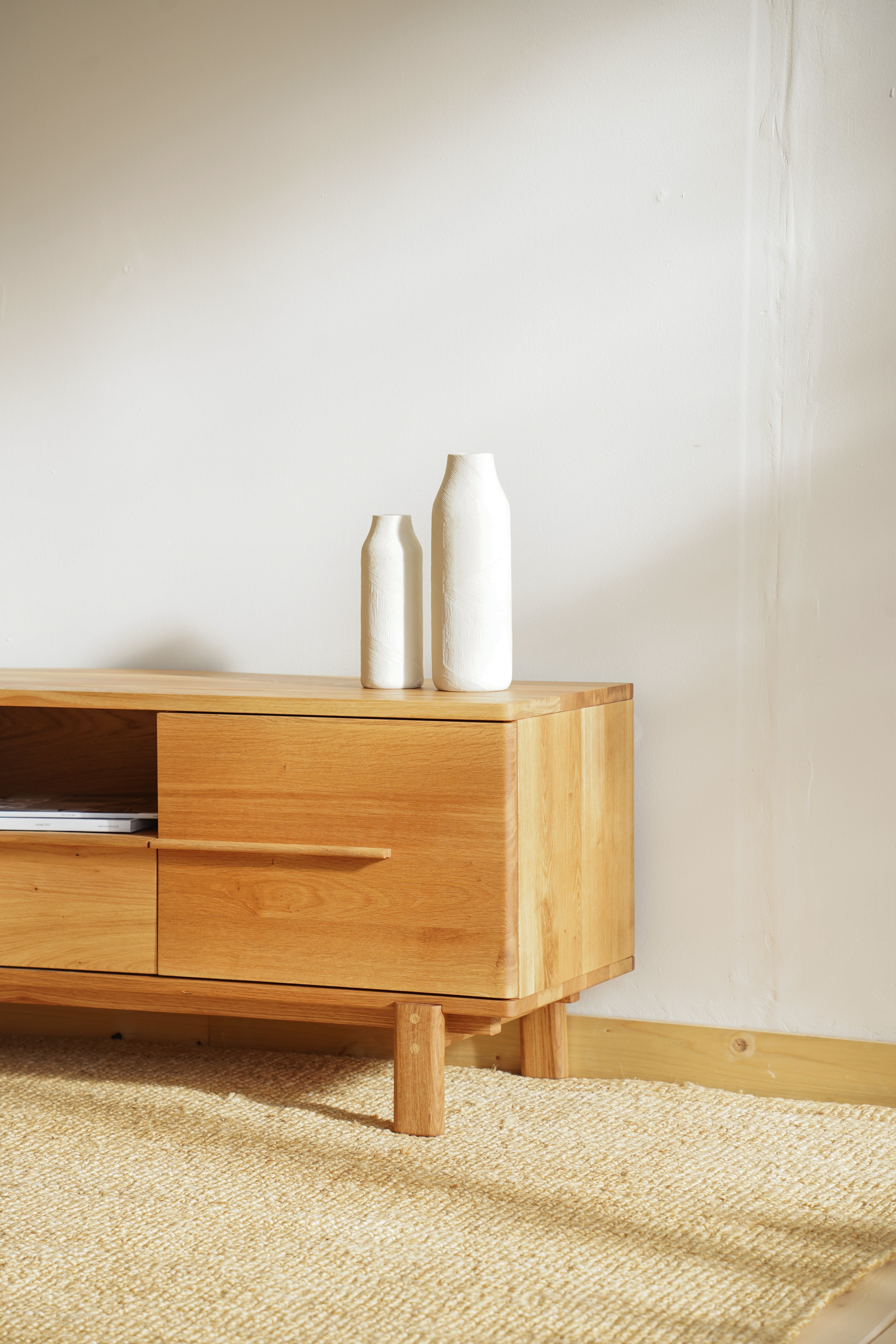 Moderný a pritom s nádychom minulosti. Krásny TV stolík z masívneho dubového dreva, ktorý v sebe kombinuje jedinečný a do detailu premyslený dizajn, funkčnosť a nadštandardnú kvalitu. Jemne zaoblené rohy, trojica zásuviek s tichým dojazdom aj minimalistické dubové nožičky vás jednoducho nadchnú.