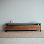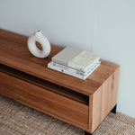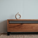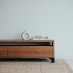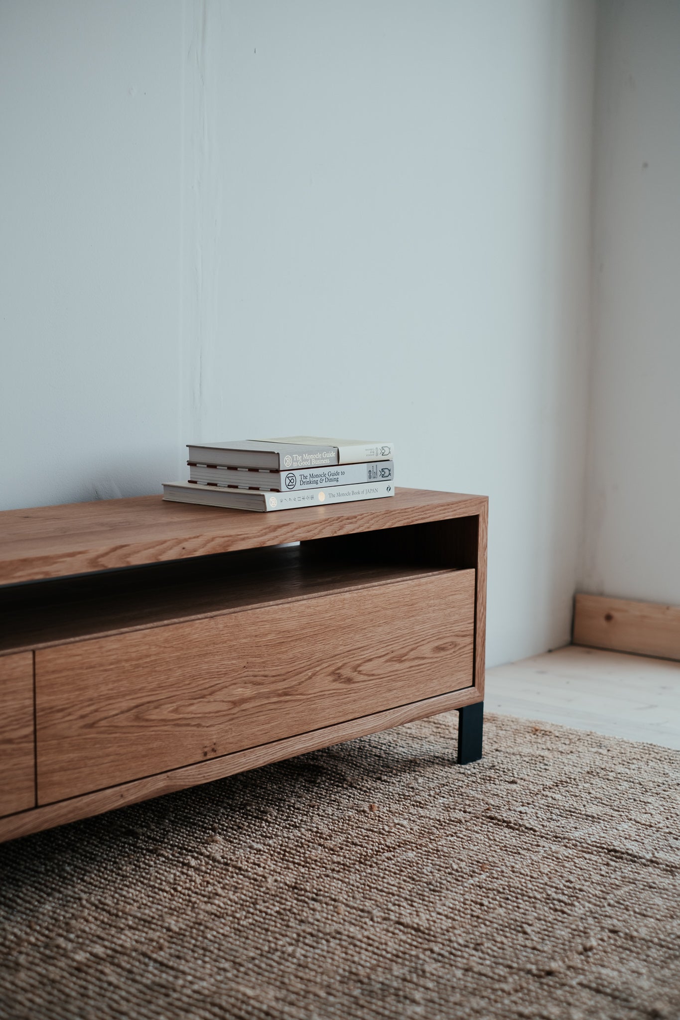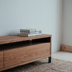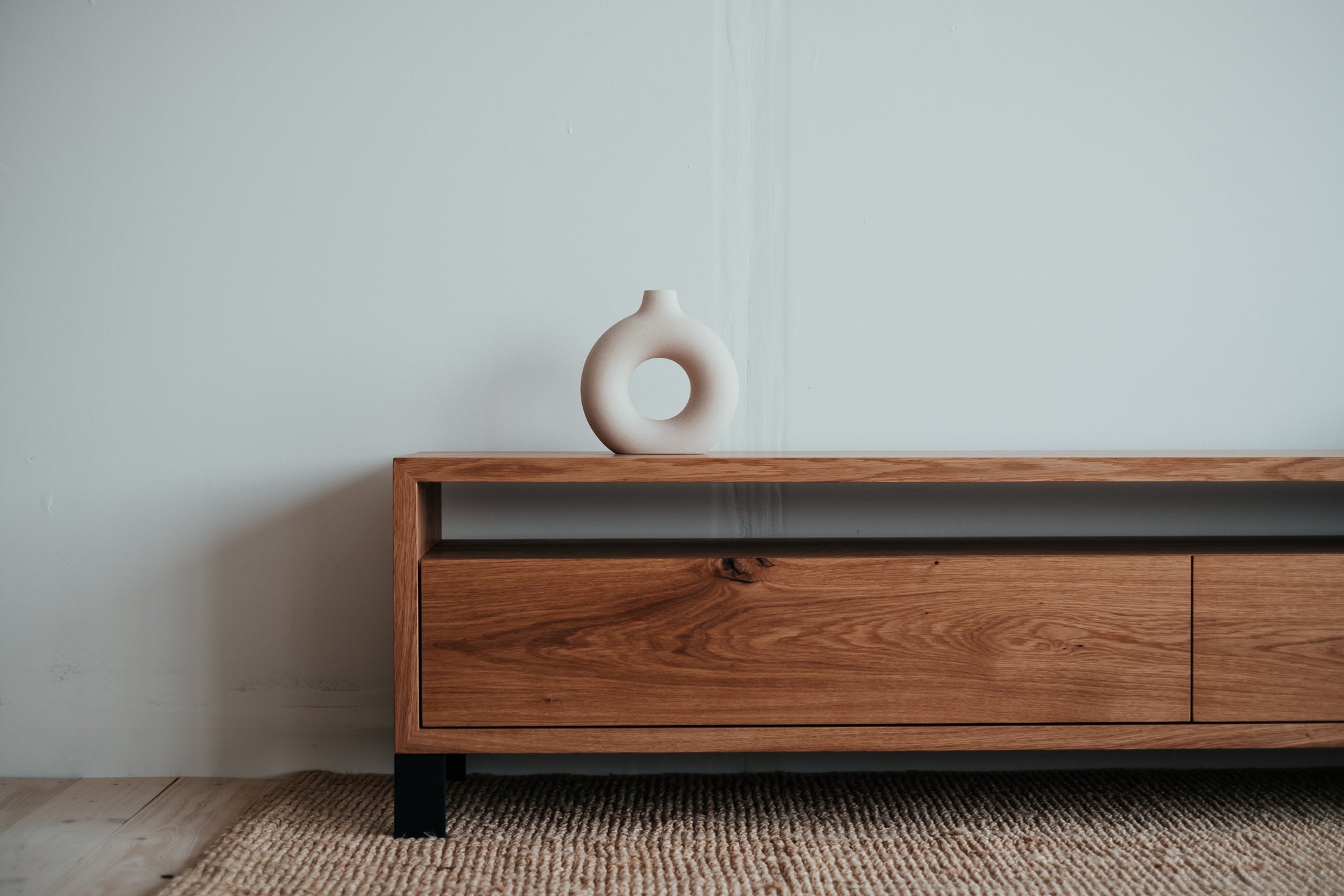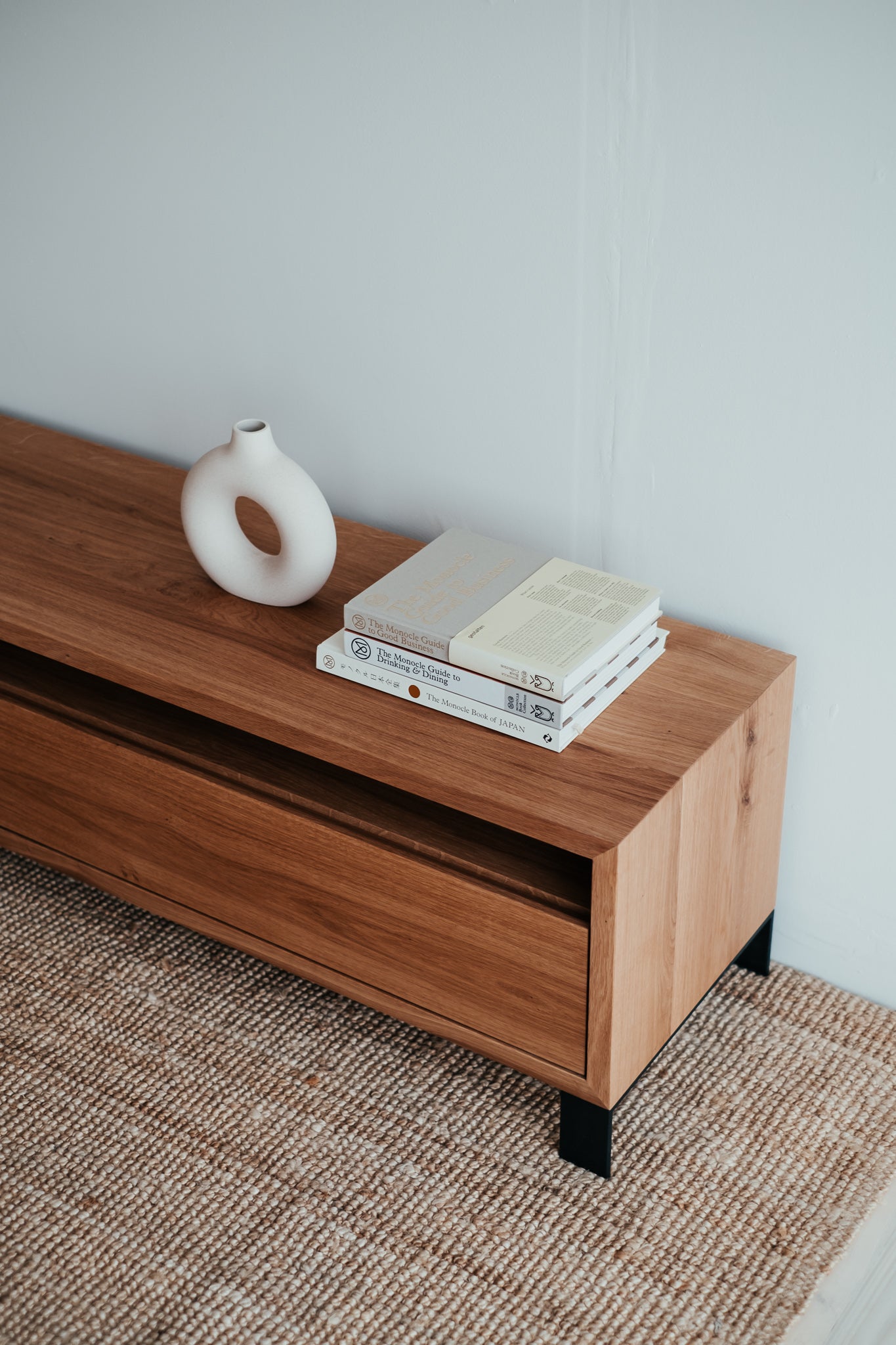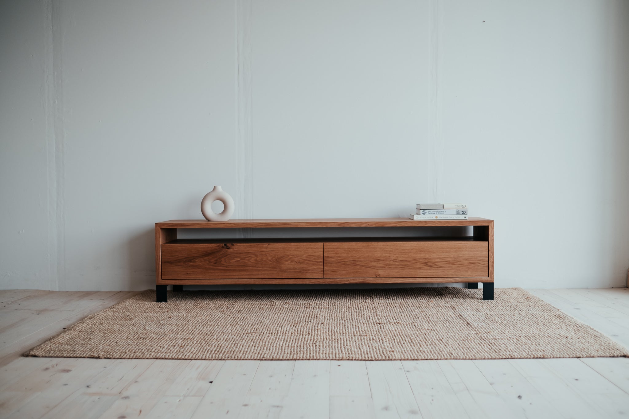Elegantný a minimalistický, no predsa pútavý. Dubový masív v dokonale čistých líniach, ktoré s ladnosťou odhaľujú krásu dreva v každom detaile. Zapustená dvojica zásuviek s tichým dojazdom a bez úchytov tento pocit ešte viac zvýrazňuje.