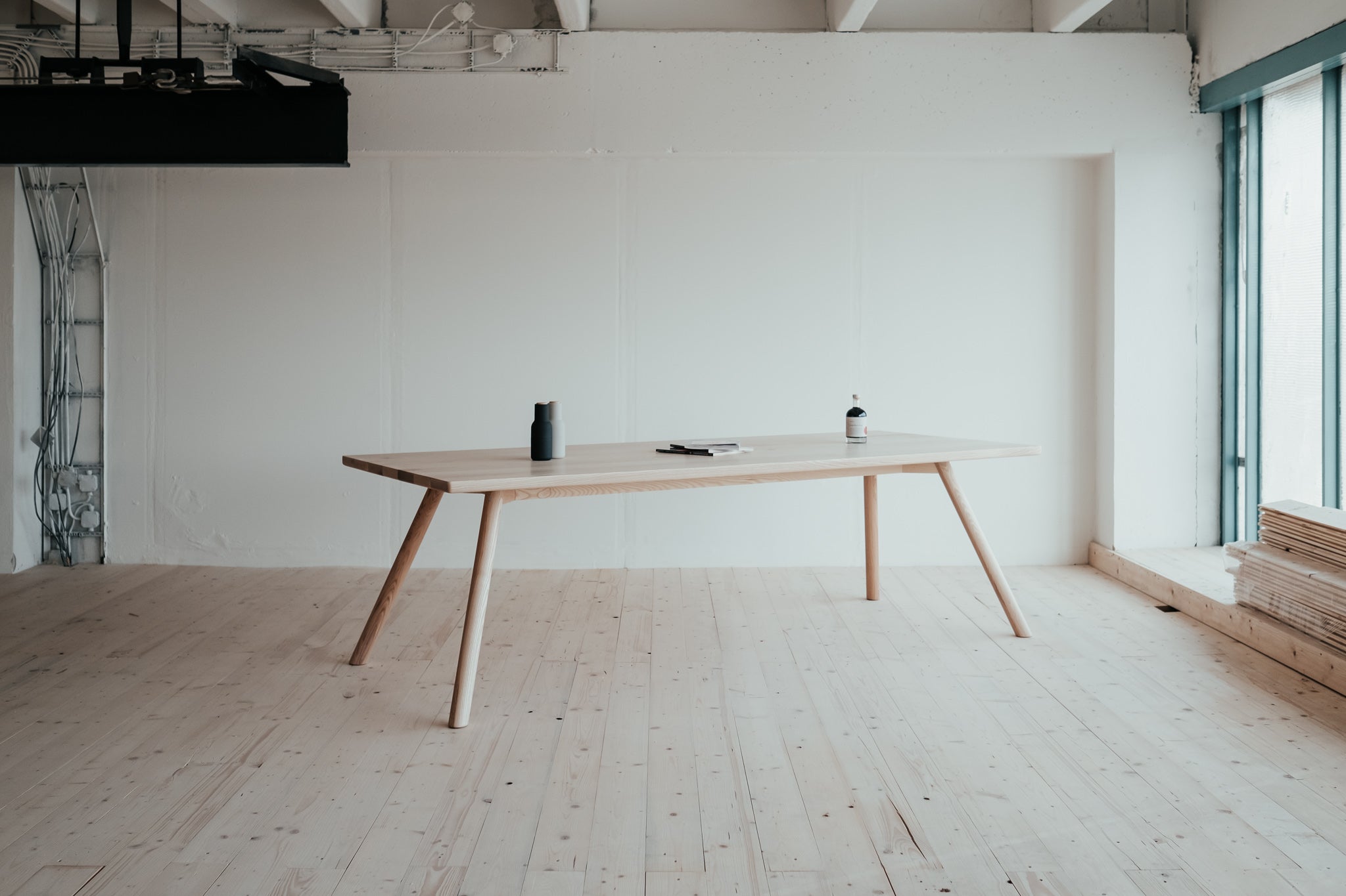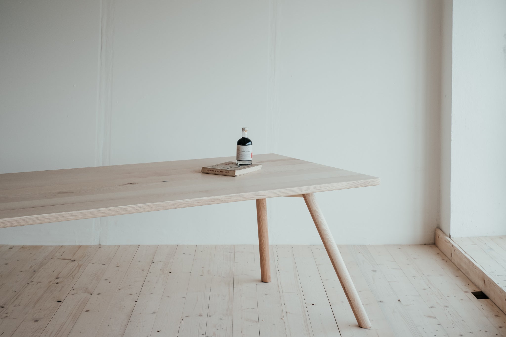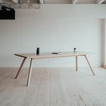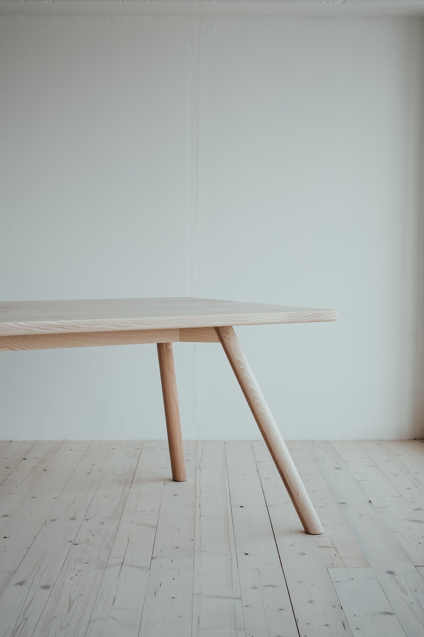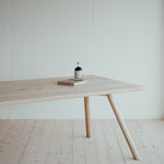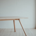 Pružný a húževnatý stôl ako stvorený pre váš domov alebo kanceláriu. Dokonalý minimalizmus v najčistejšej forme. Masívne jaseňové drevo najvyššej kvality je na pohľad aj na dotyk krásne a poddajné. Útle, elegantné nohy vyniknú vďaka atypickému sklonu a dodávajú celému stolu jedinečný dizajnový nádych, ktorý si zamilujete.