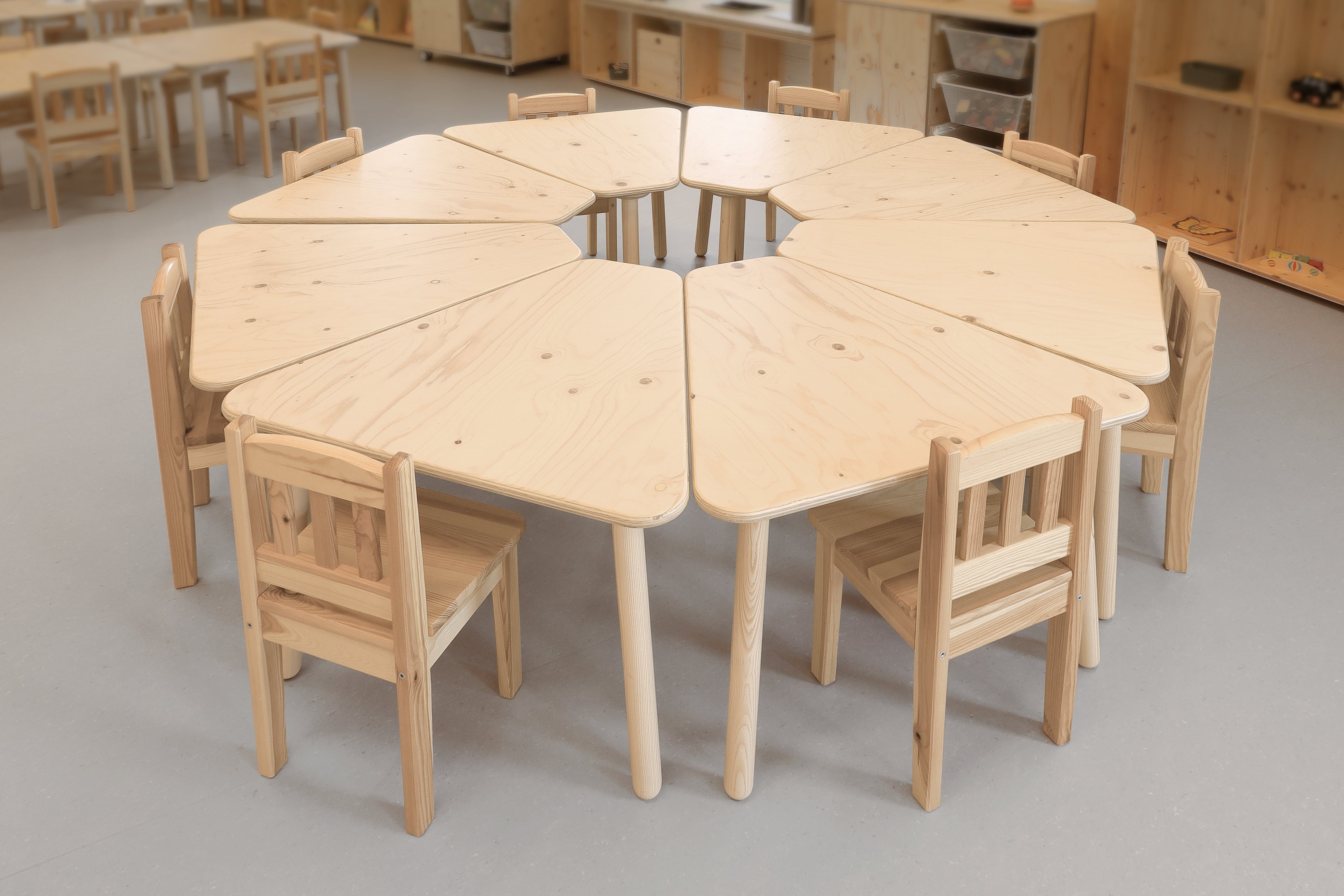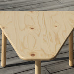 Je to trojuholník ale trochu iný. A predsa ho vaše deti budú milovať. Tak ako všetko, čo robíme, aj tento smrekový stolík je originálny po každej stránke. Skosením jedného rohu sme dostali zaujímavý tvar, ktorý vás bude baviť. Smreková preglejka so zaoblenými hranami je bezpečná a stojí na masívnych smrekových nohách s ochanou proti poškriabaniu podlahy.